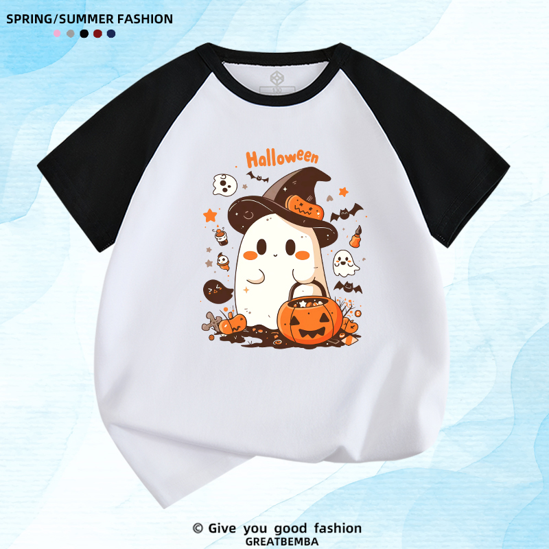 新款万圣节T恤男童女童半袖卡通南瓜幽灵Halloween儿童短袖男女