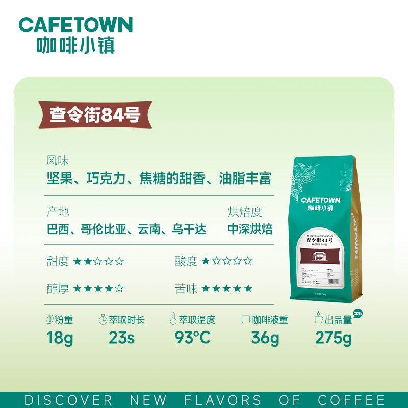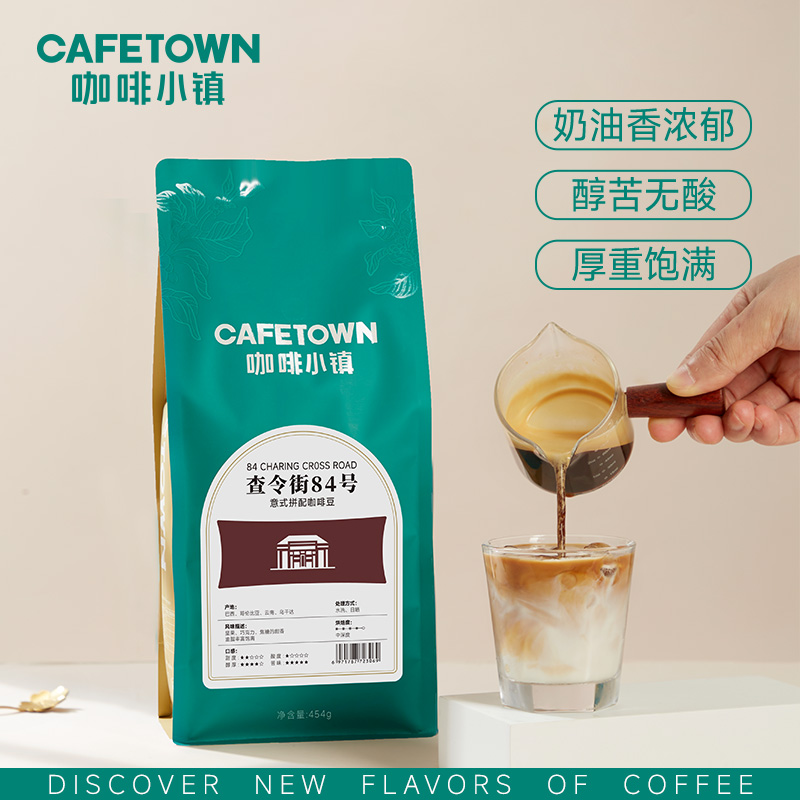 咖啡小镇查令街84号意大利美式浓缩原装进口咖啡豆拿铁咖啡粉454g