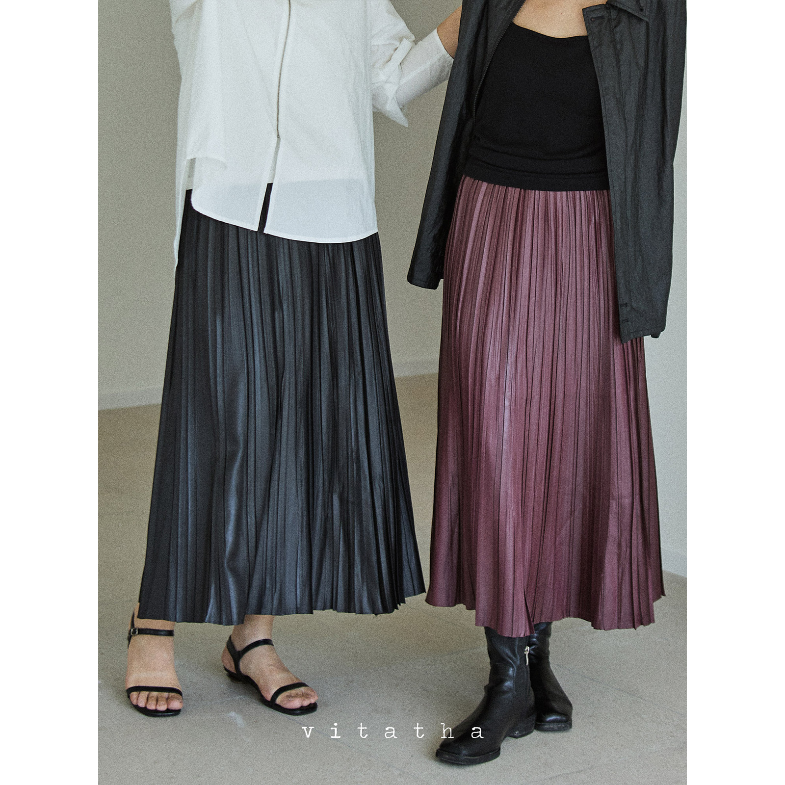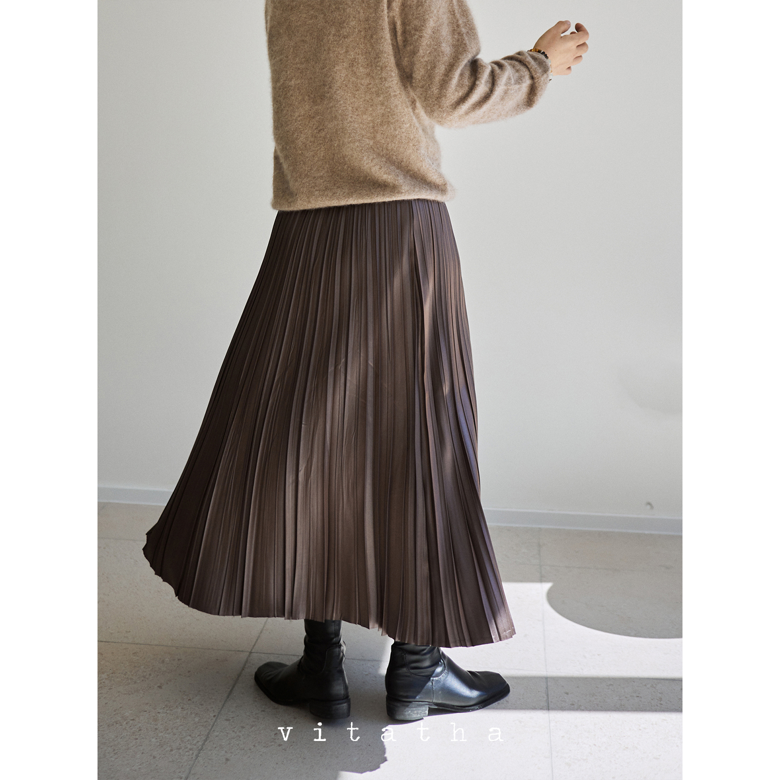 Vitatha番塔塔 「琴」肉肉友好秋冬好搭配垂感松紧腰柔光百褶裙
