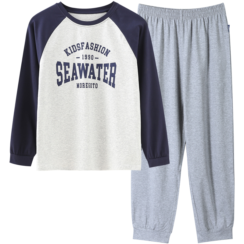 胖童长袖睡衣男童春秋薄款青少年男孩家居服套装大童秋款2025新款