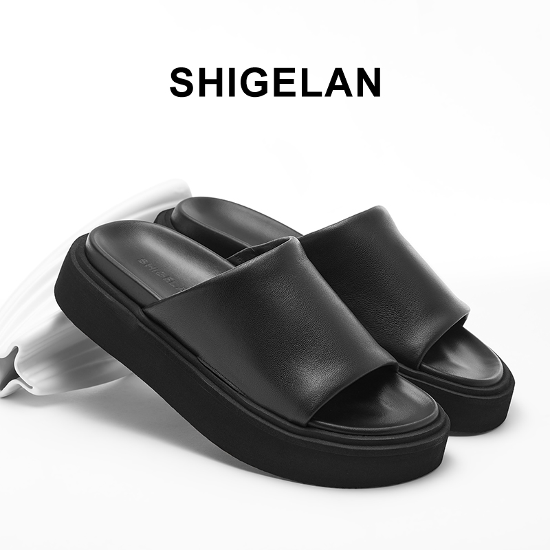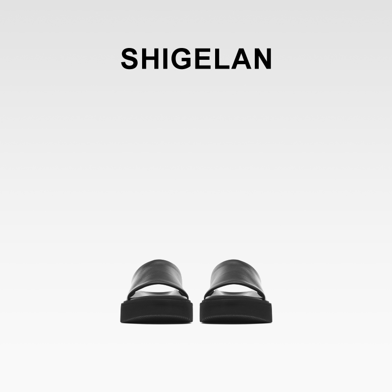 诗歌兰2025夏季新款真皮休闲一字拖百搭厚底防滑沙滩凉拖鞋女外穿