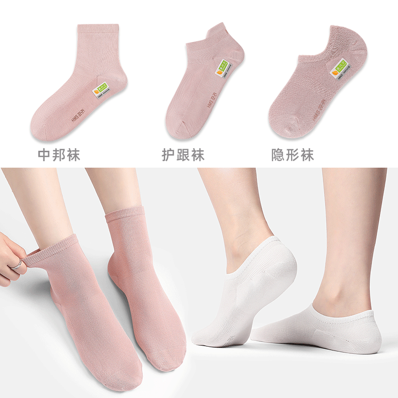 韩玛斯莫代尔袜子夏季薄款男女短袜抗菌透气不掉跟船袜中邦亲子袜