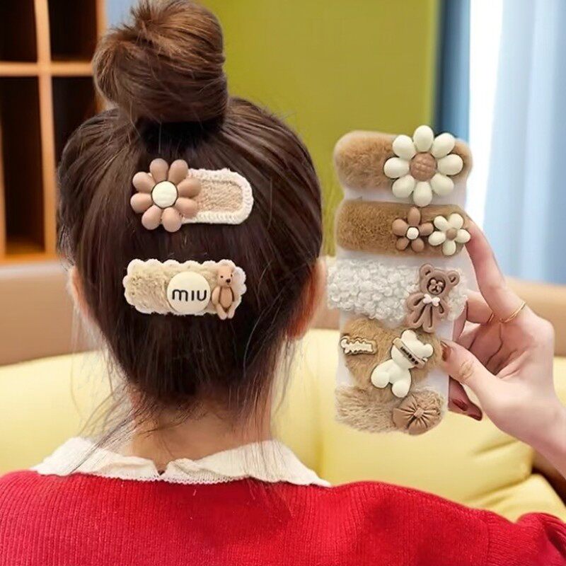 花朵卡通毛毛发夹刘海夹碎发侧边小边夹bb夹网红毛绒发卡秋冬