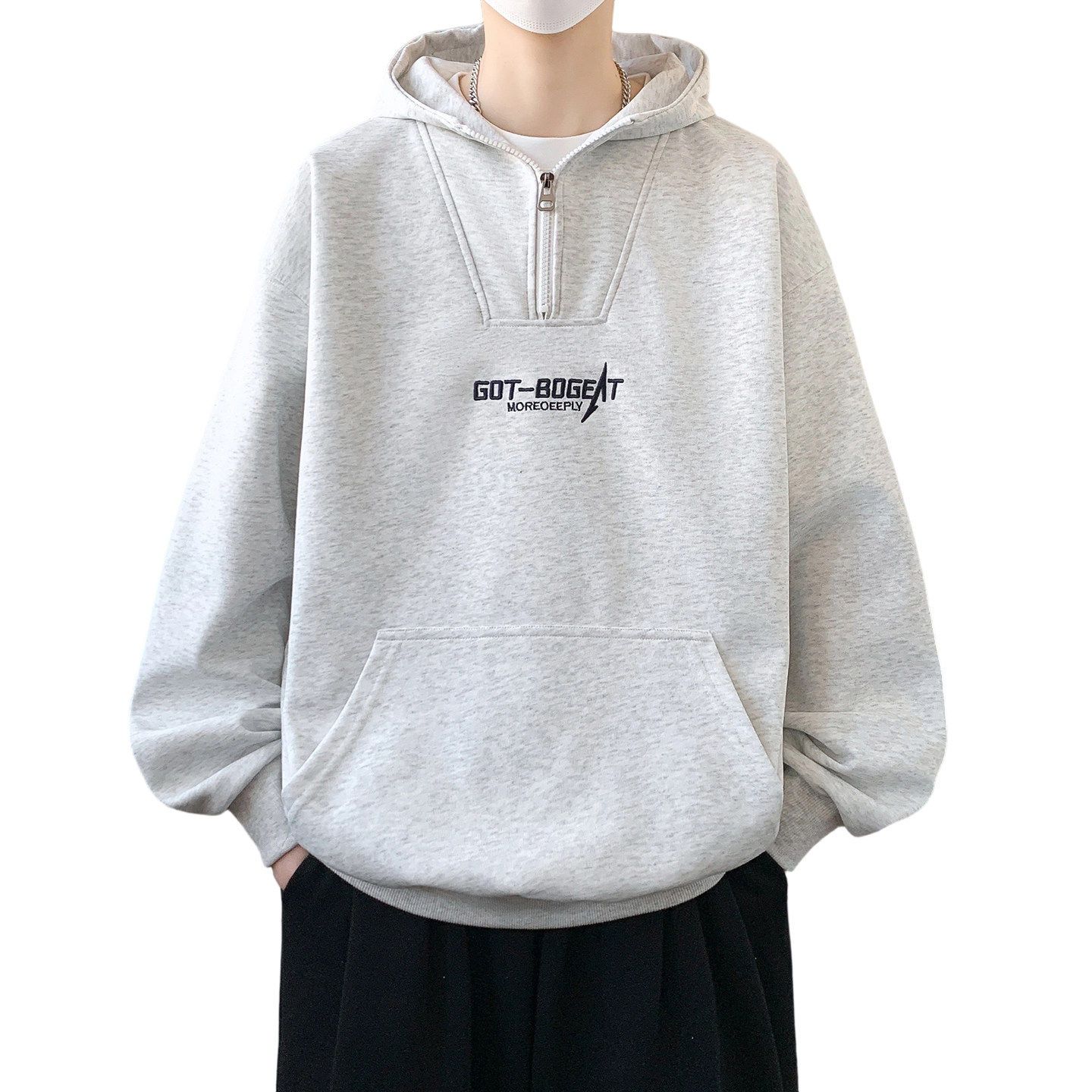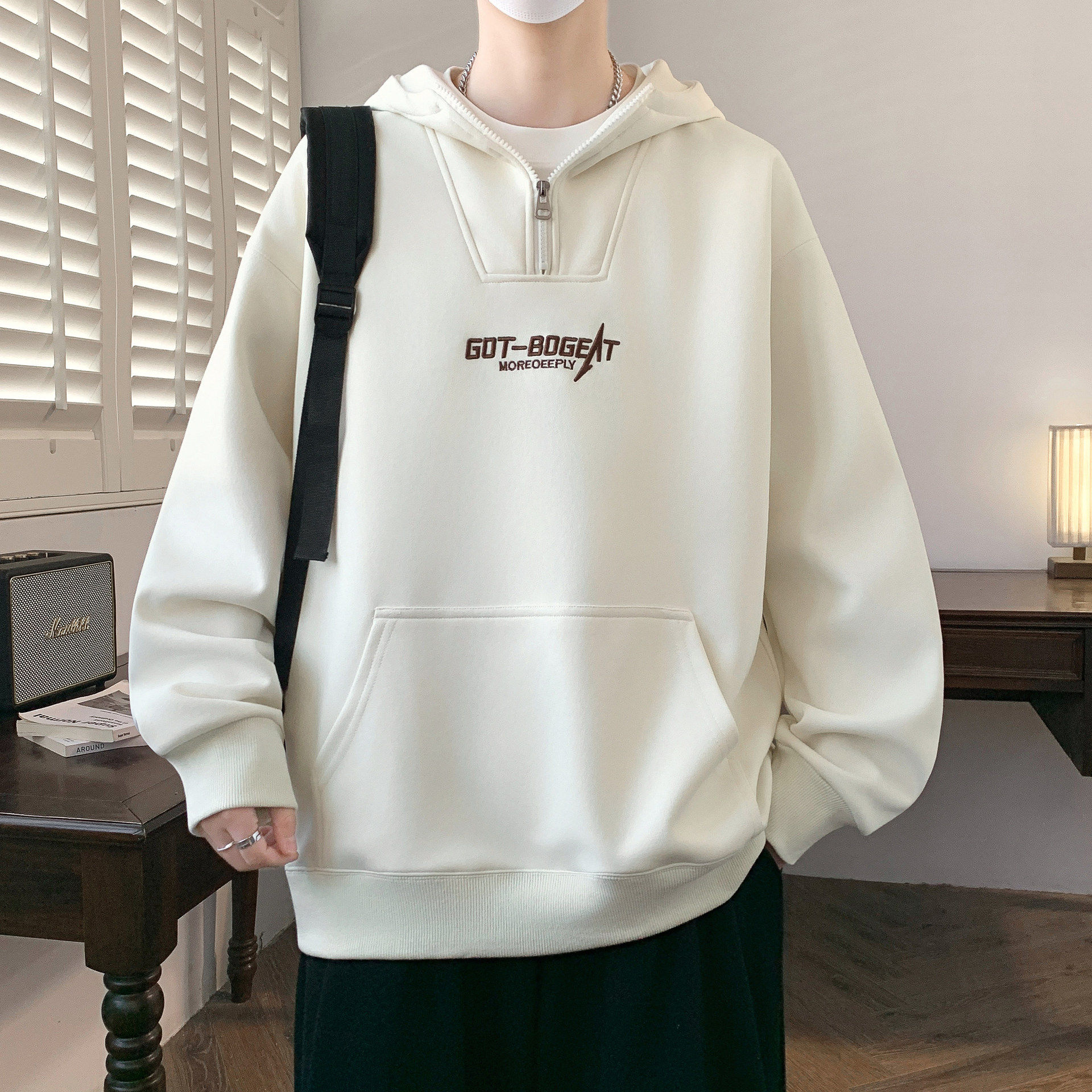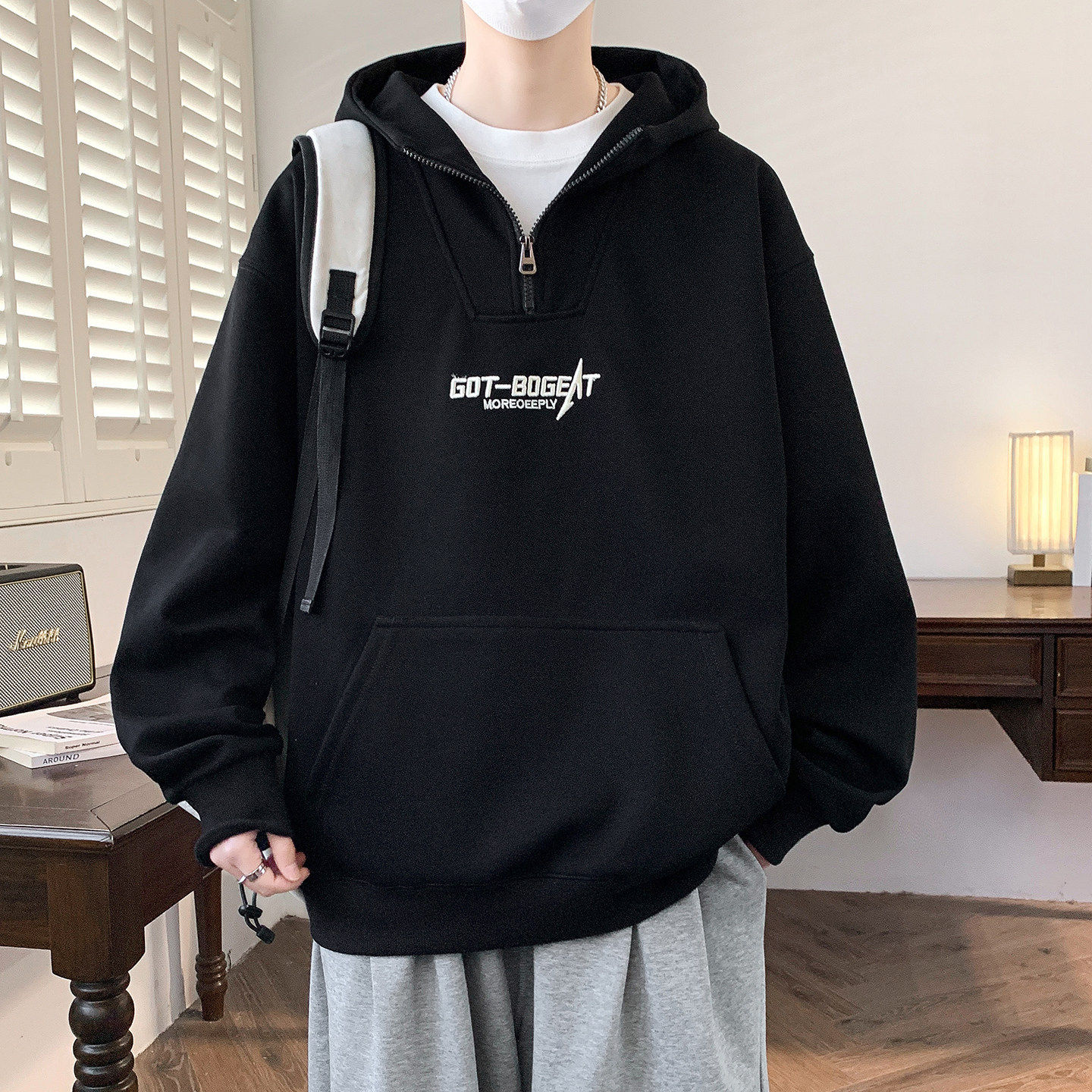 进口连帽卫衣男新款初中高中学生青少年外套大童半拉链上衣