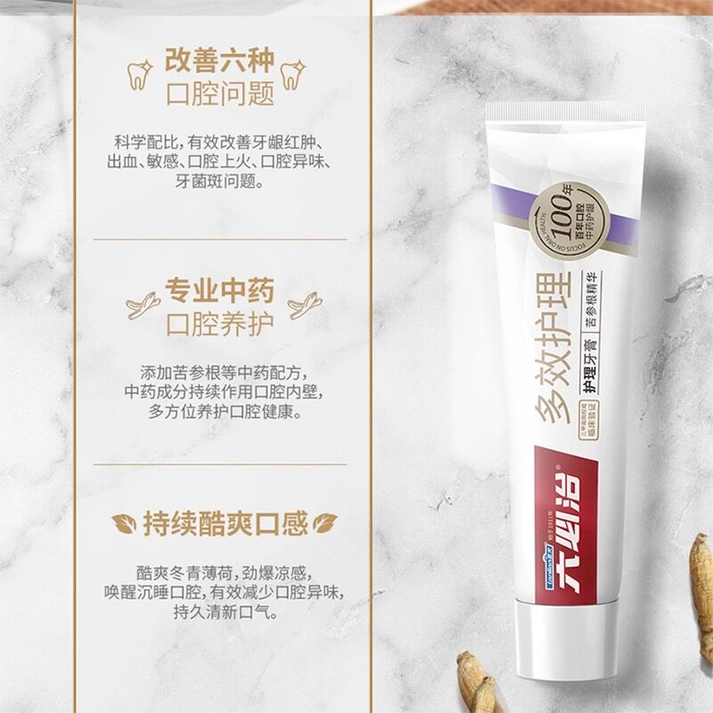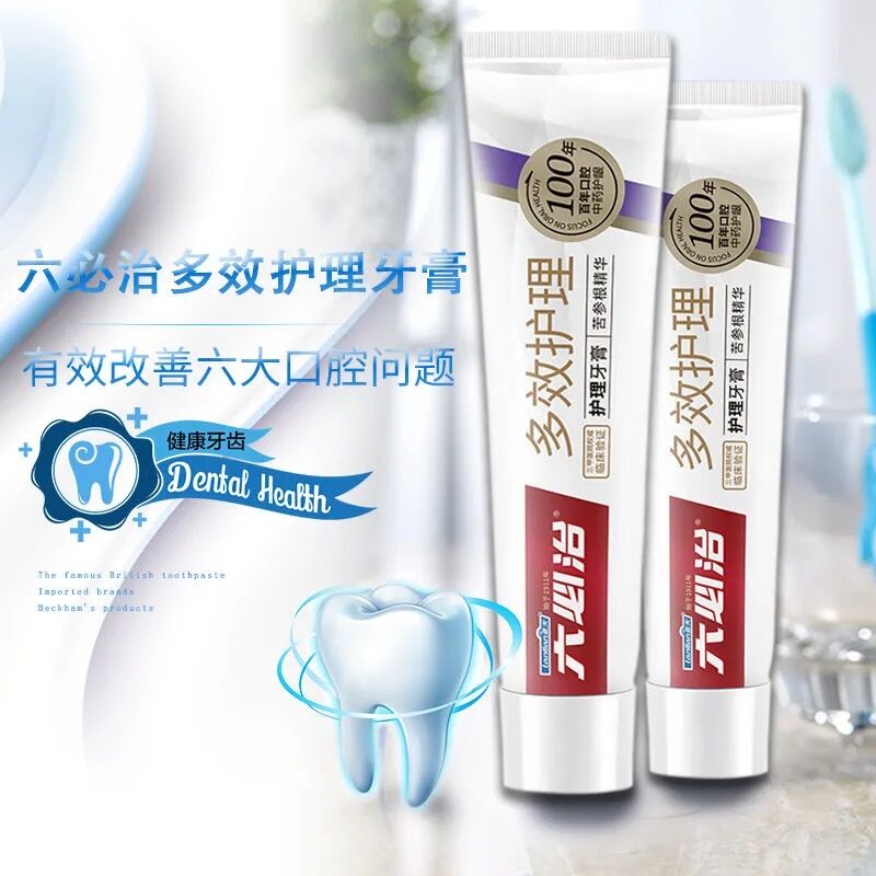 六必治多效护理牙膏养护牙龈洁牙亮白牙渍小苦参根中草药家庭装