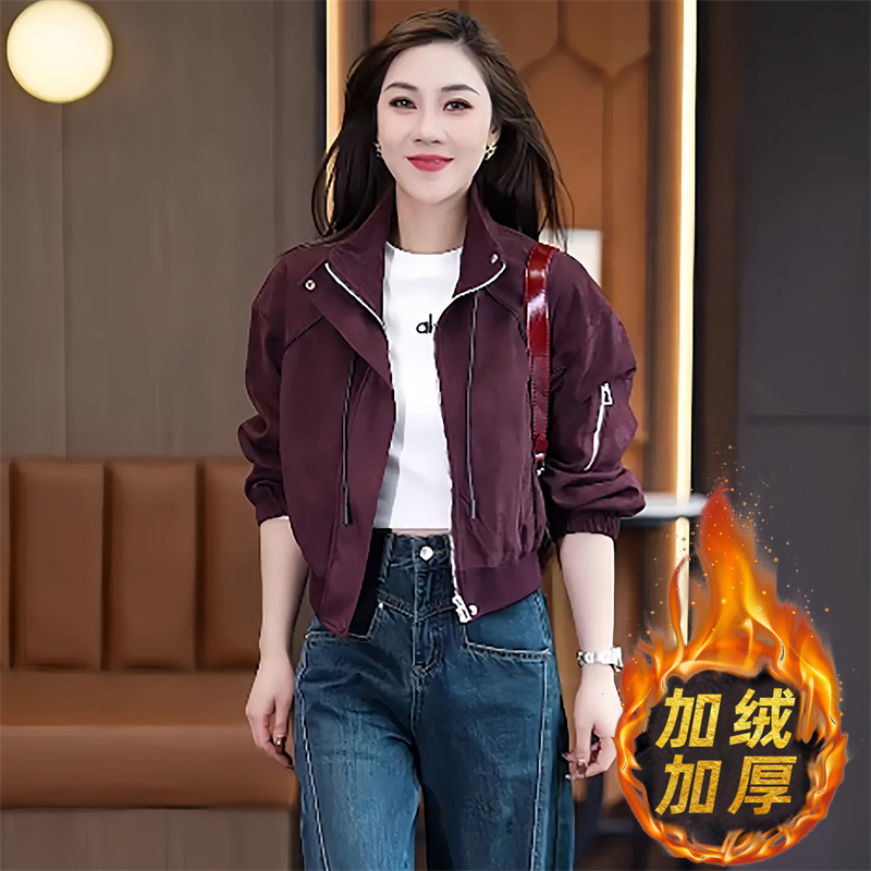 加绒加厚时尚短外套女秋冬季新款韩系复古夹克衫休闲百搭洋气上衣