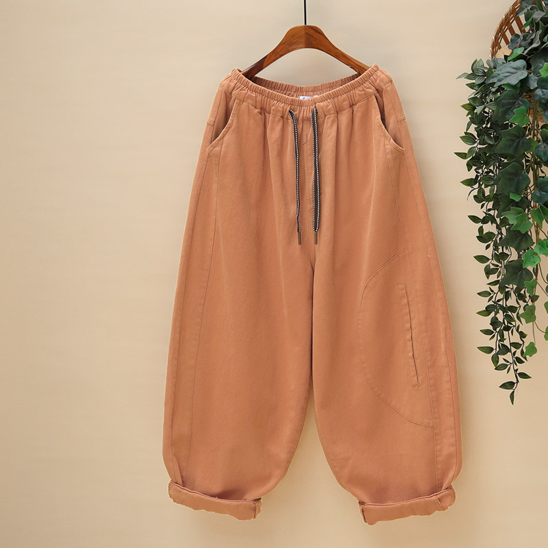 磨毛棉休闲裤松紧腰抽绳哈伦长裤
