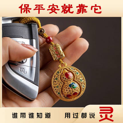 情侣款创意沙金平安葫芦钥匙扣汽车钥匙挂饰男女钥匙链福禄礼品