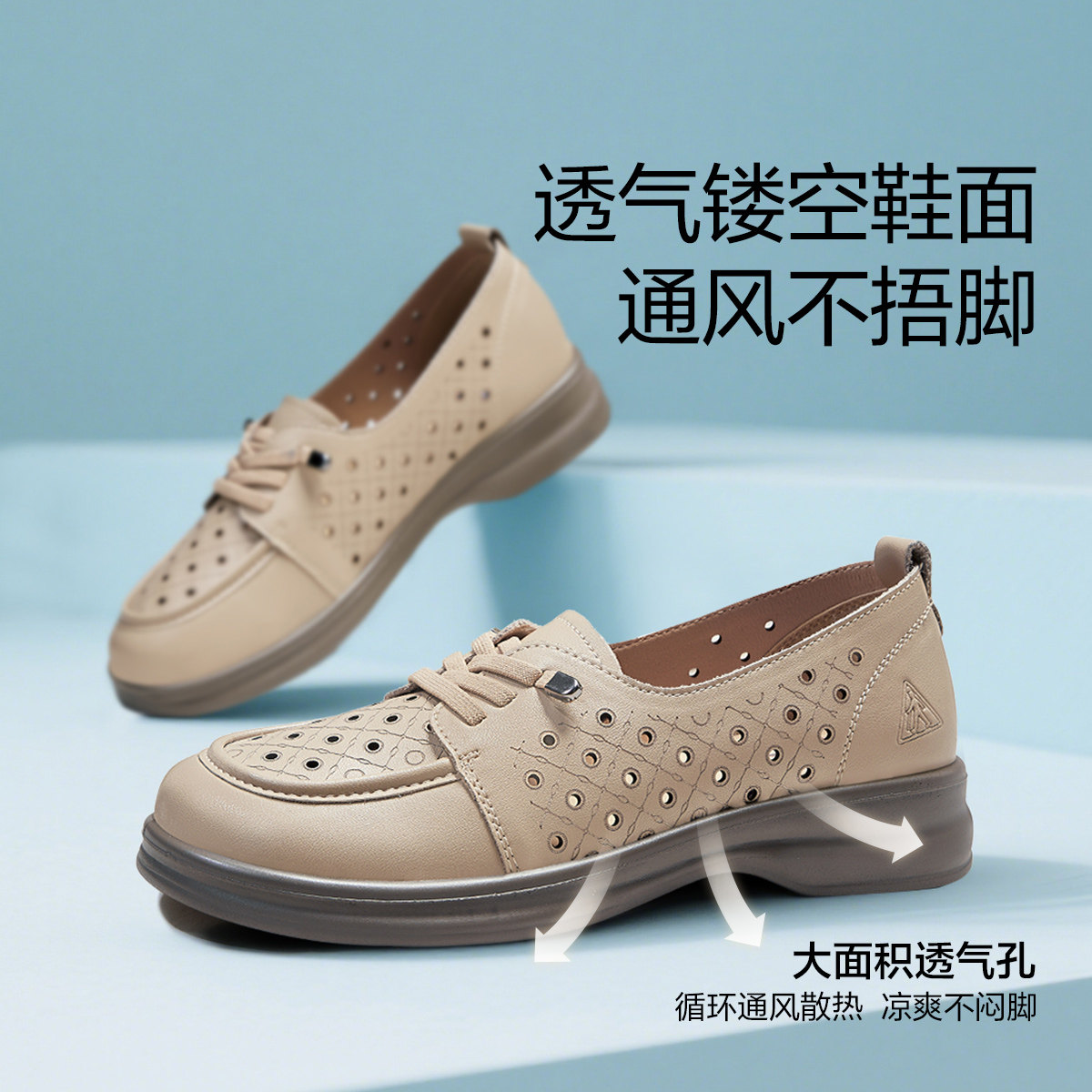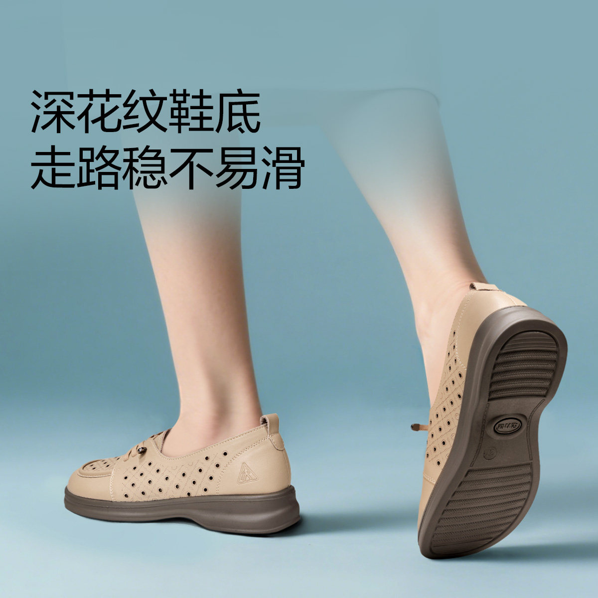 足力健老人鞋女鞋妈妈皮鞋乐福鞋