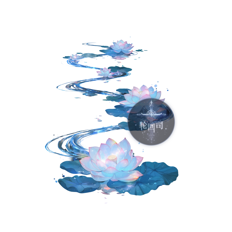 梦幻古风仙侠蜿蜒水波荷花PNG免扣元素原创可商水印美工设计素材
