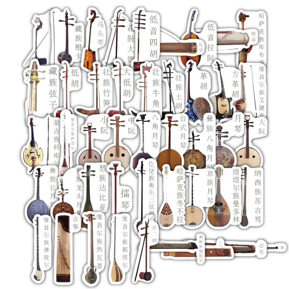 【大图释官方授权】120张每天认识一种弦鸣乐器日常认识乐器儿童装饰自粘贴画diy标签贴纸手机壳玩具防水贴纸