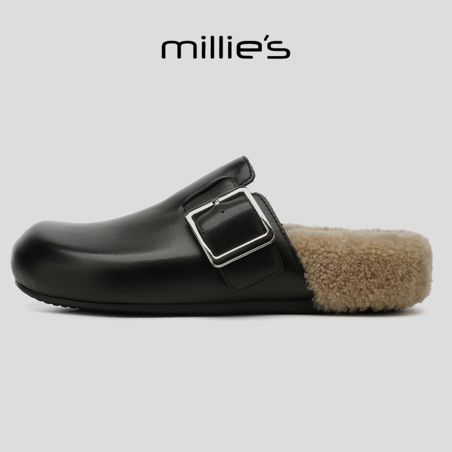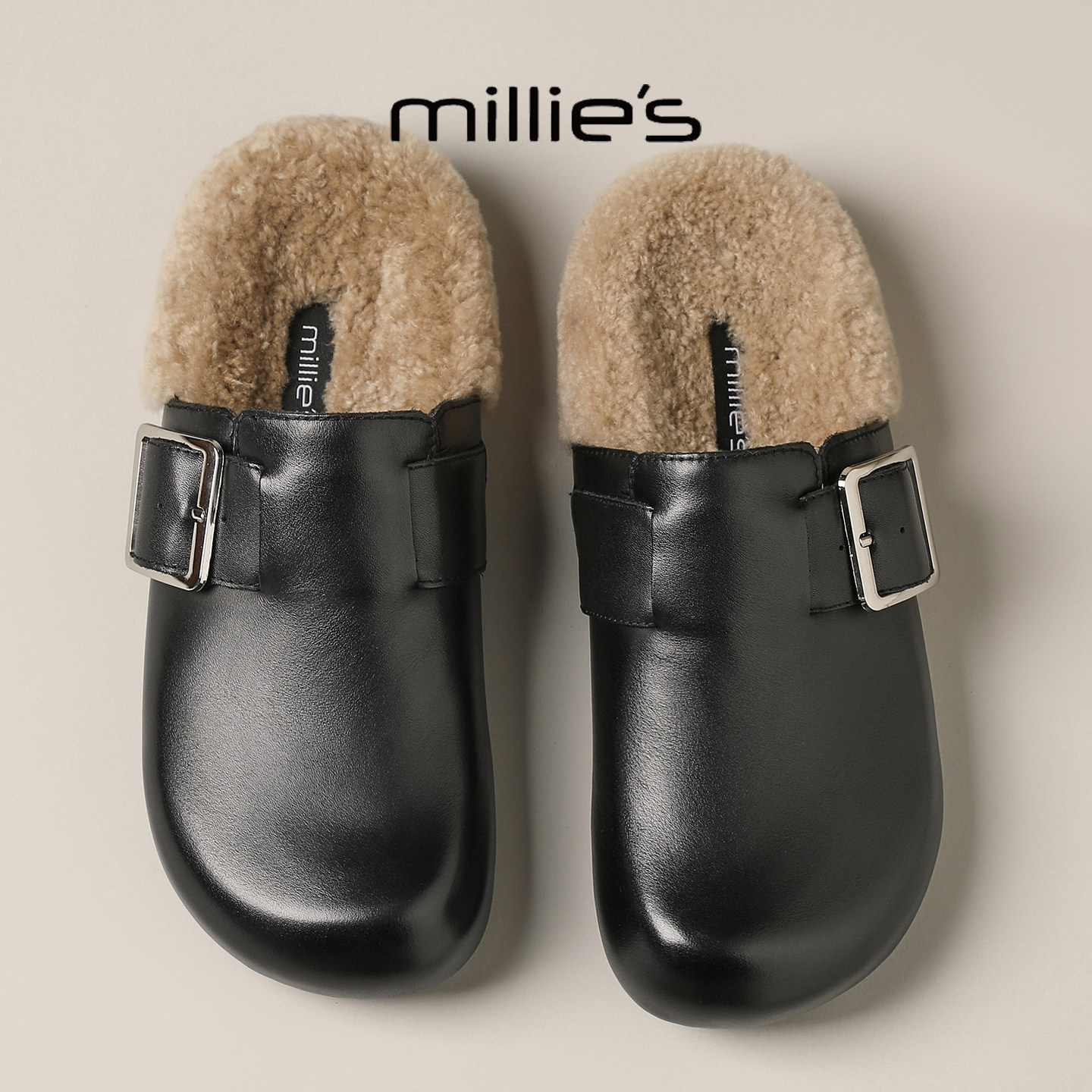 MILLIE'S/妙丽2025新款加绒保暖户外拖鞋时尚休闲鞋勃肯半包女鞋