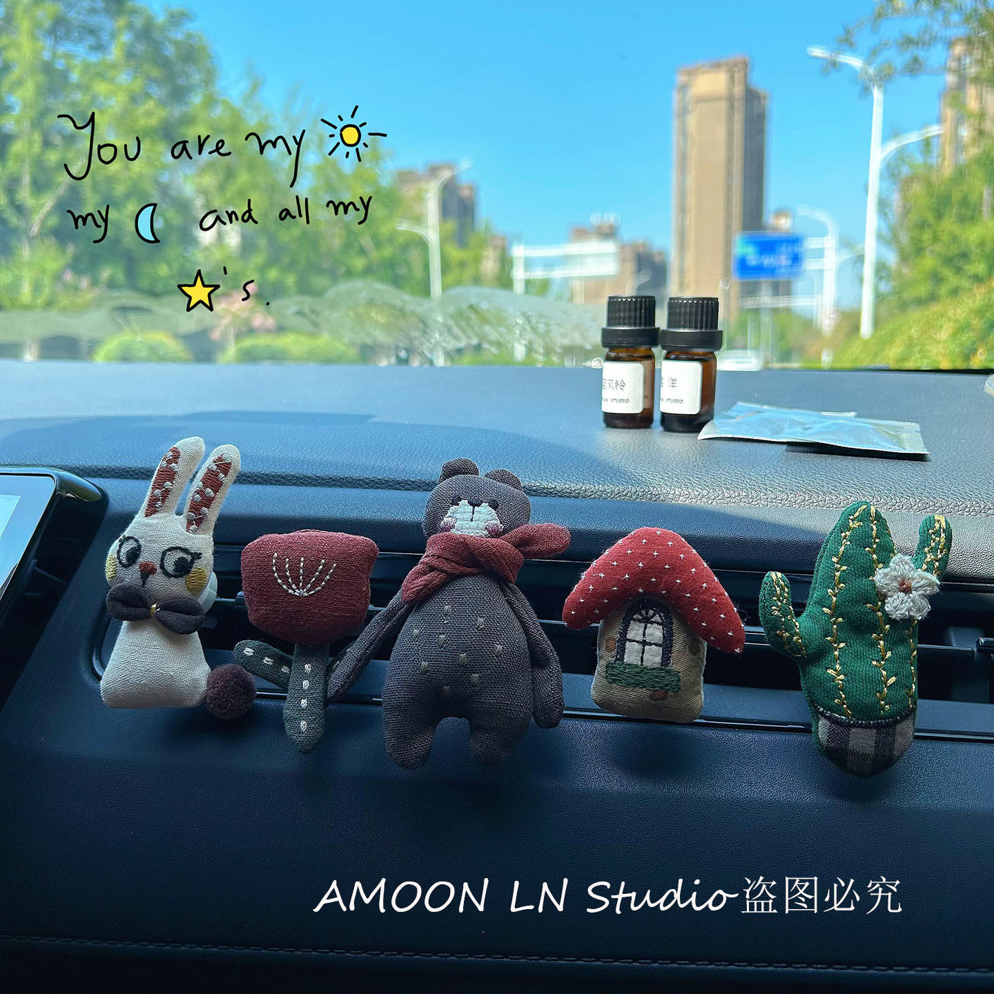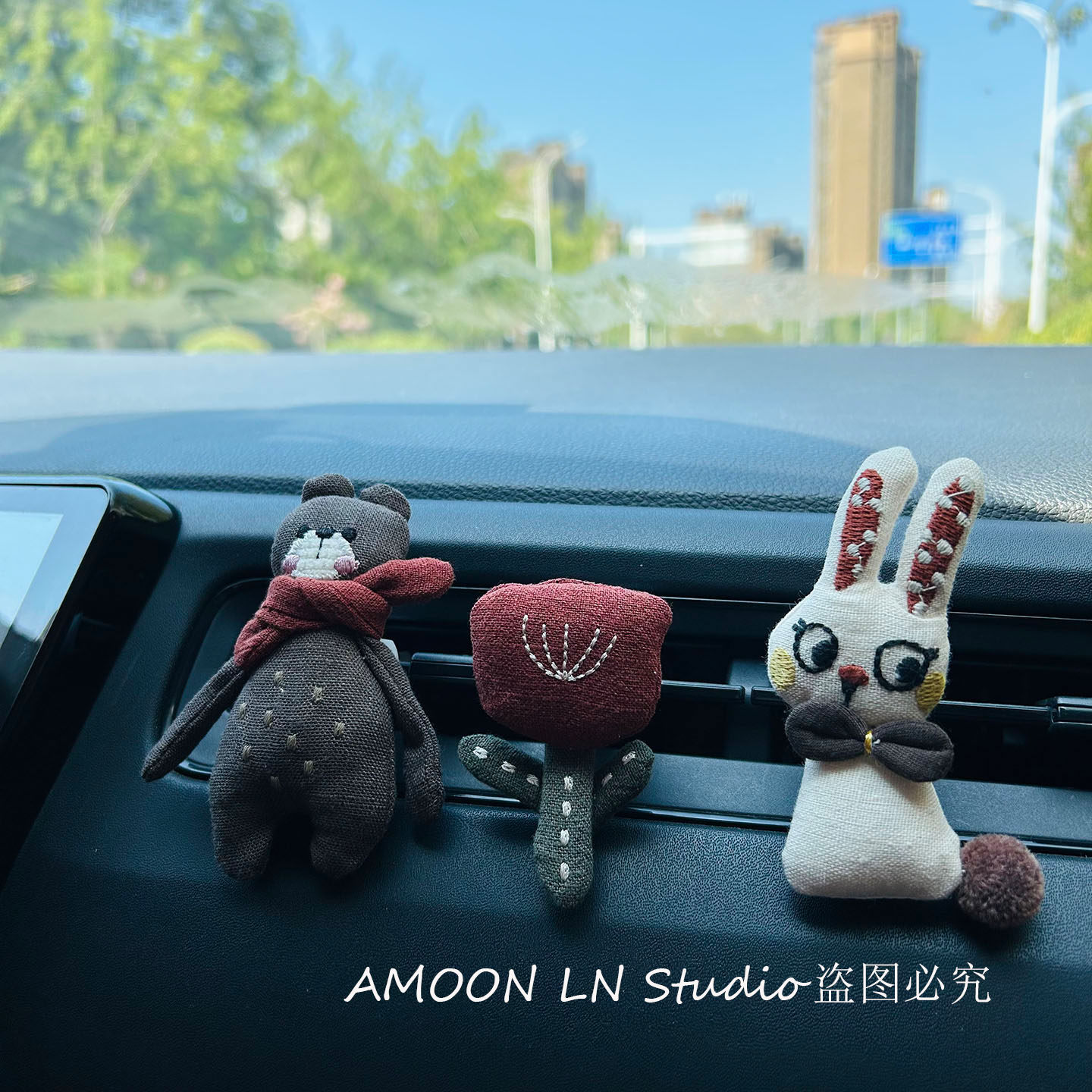 球球兔子布艺汽车出风口香薰夹子精油车载小熊花朵车内精油装饰女