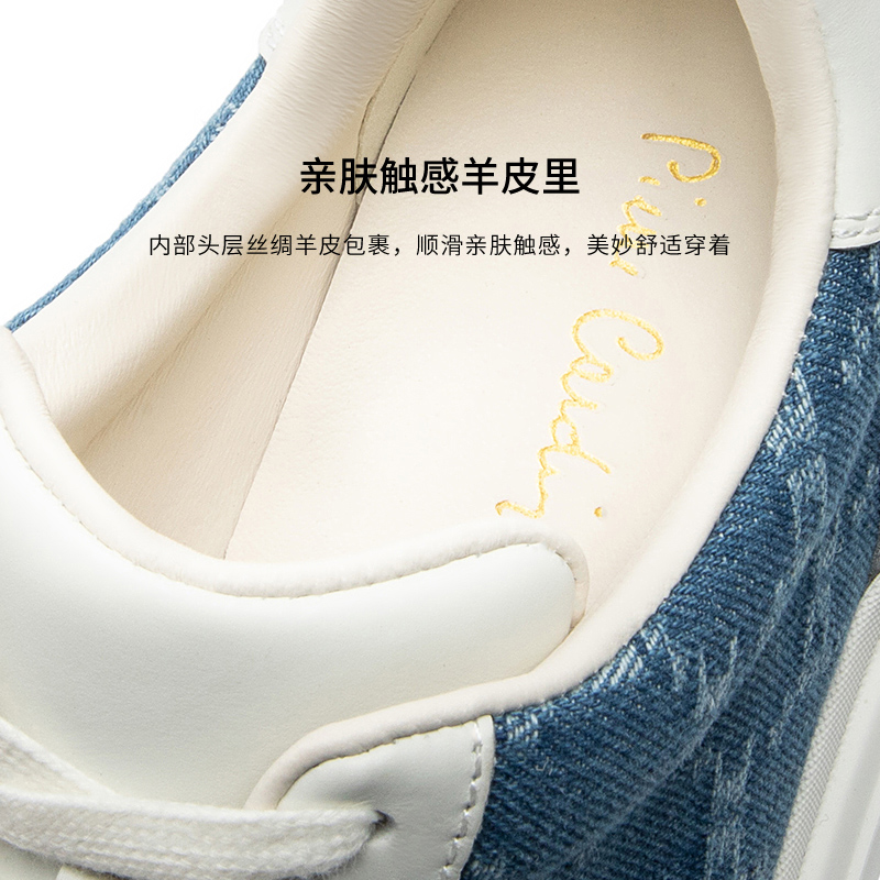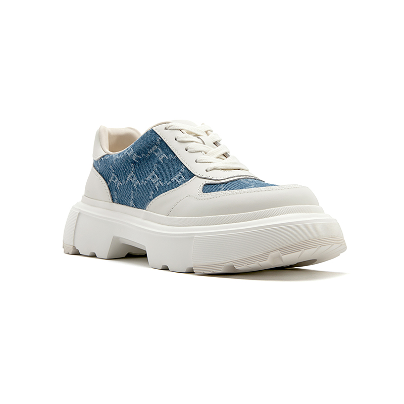 Pierre Cardin/皮尔卡丹25女鞋丹宁牛仔布拼接真皮厚底休闲鞋轻底