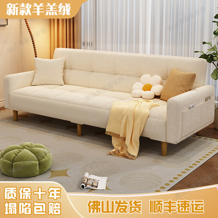 2025新款羊羔绒沙发可折叠多功能出租房公寓小户型网红奶油小沙发