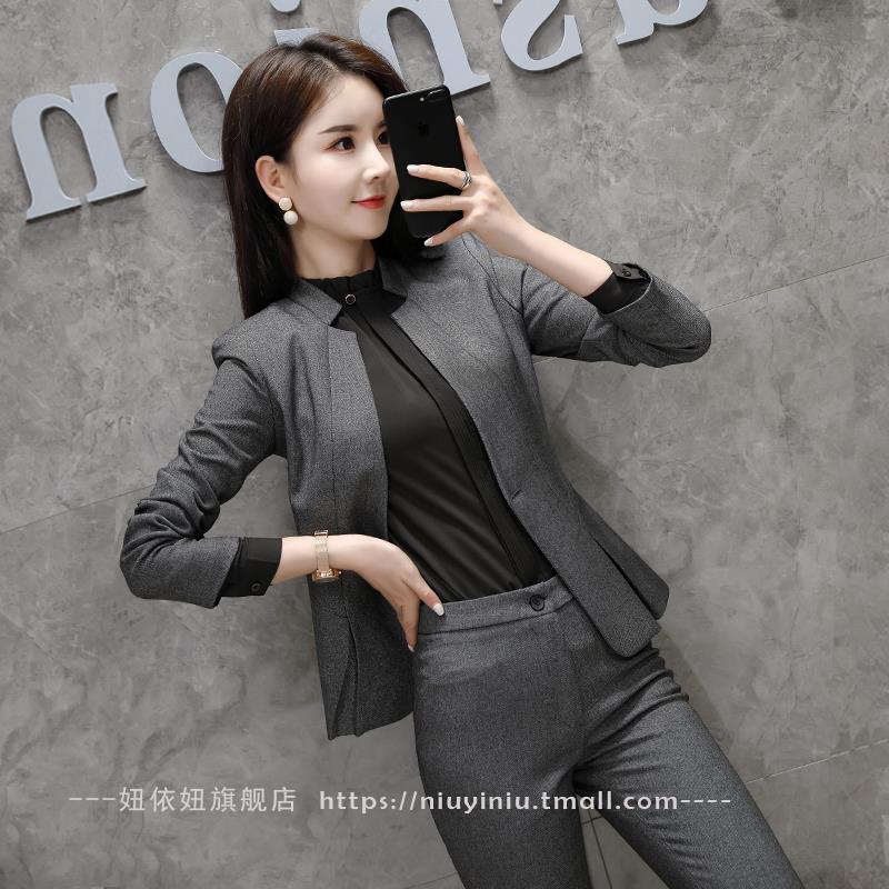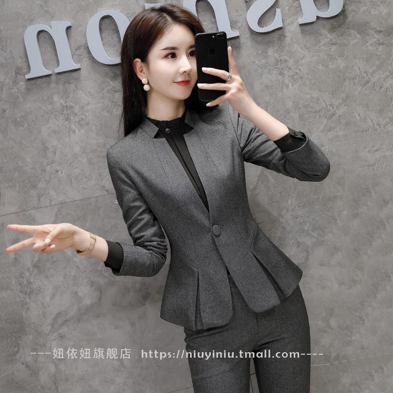 职业装套装女秋冬新款时尚气质灰色西服正装大学生面试工装工作服