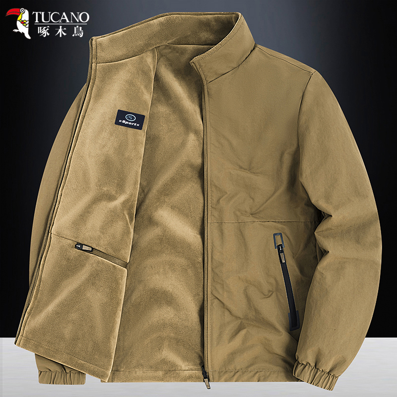 啄木鸟双面穿夹克外套男士冬季休闲大码宽松立领双面摇粒绒上衣男