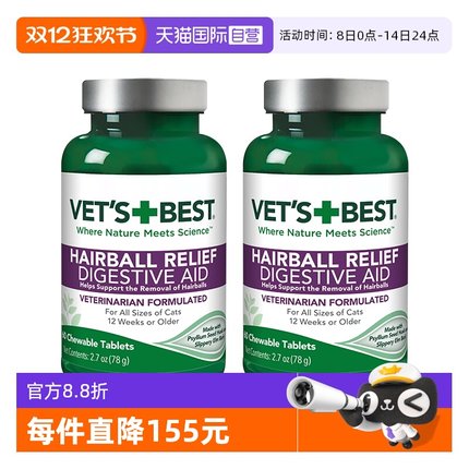 【自营】绿十字猫草片猫用排毛化毛球片植物配方猫草片60粒*2瓶