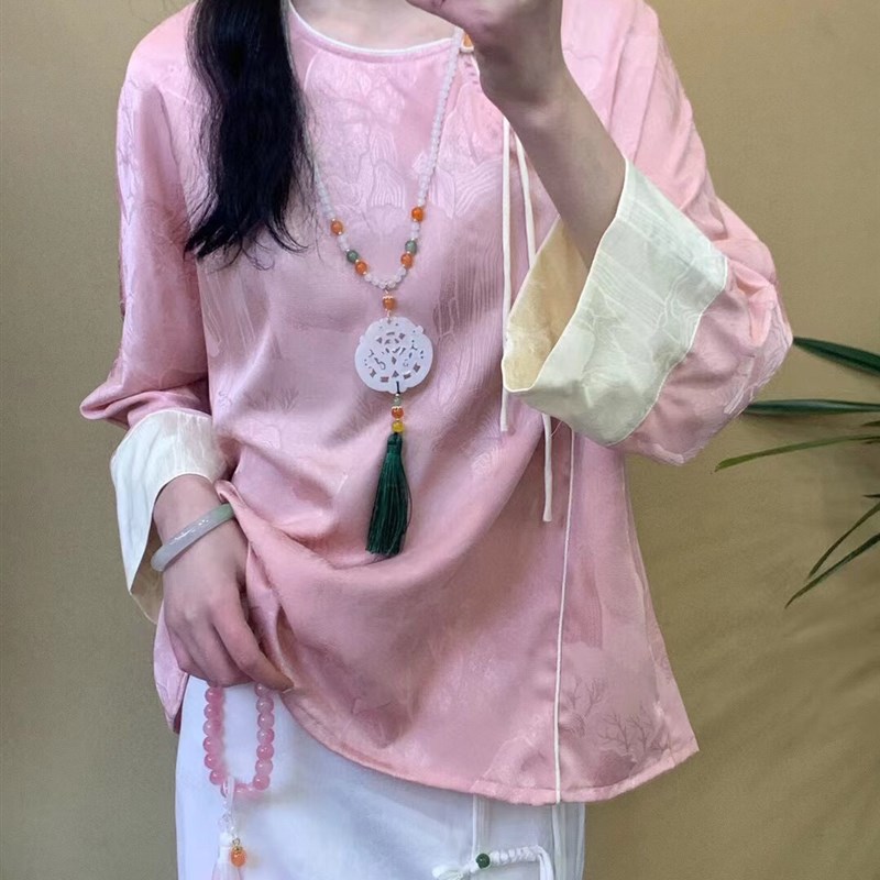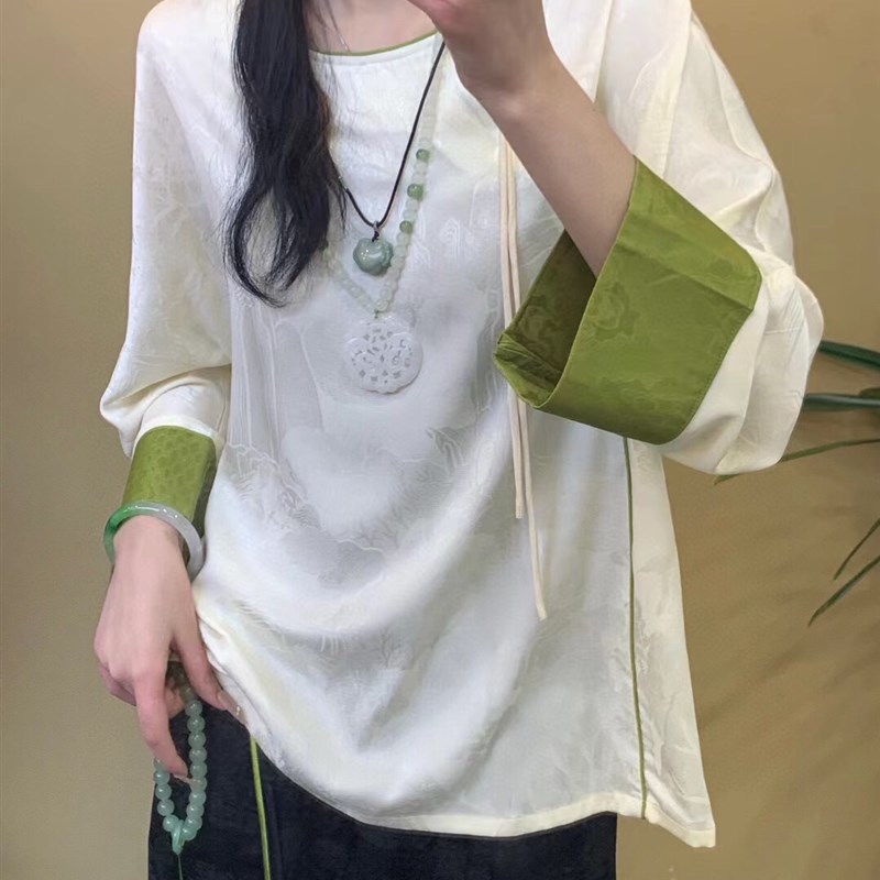 秋款国风春意盎然衬衣女薄荷绿 白色 粉色 XL-4XL