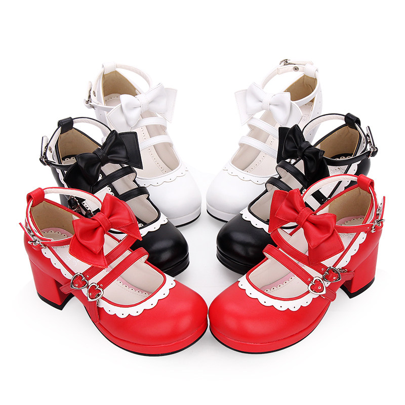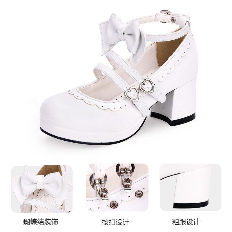 普普家2020春季新品Lolita鞋中跟圆头花边蝴蝶结软妹少女鞋8863