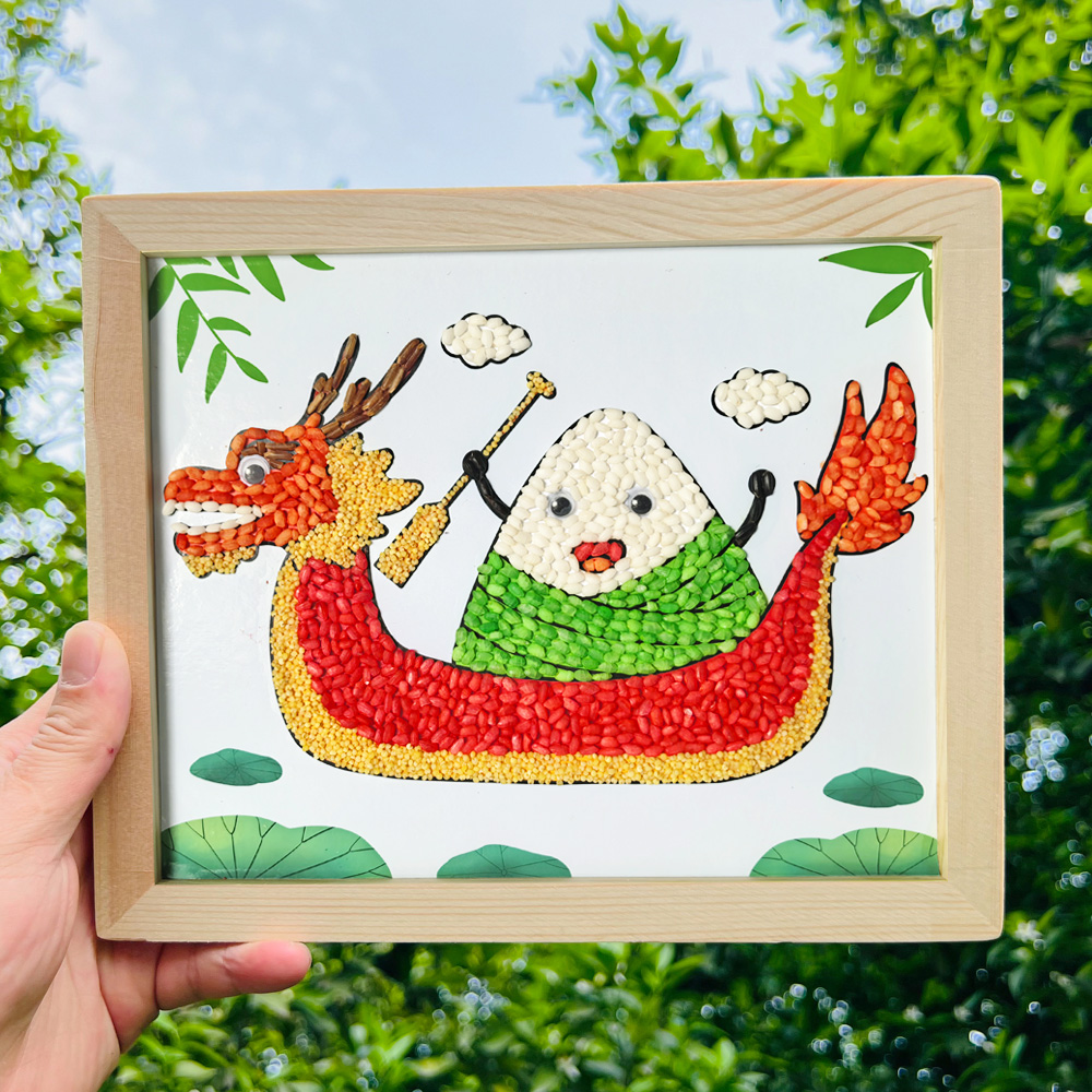 端午节非遗手工diy材料包粽子龙舟豆子粘贴画学生幼儿园亲子活动