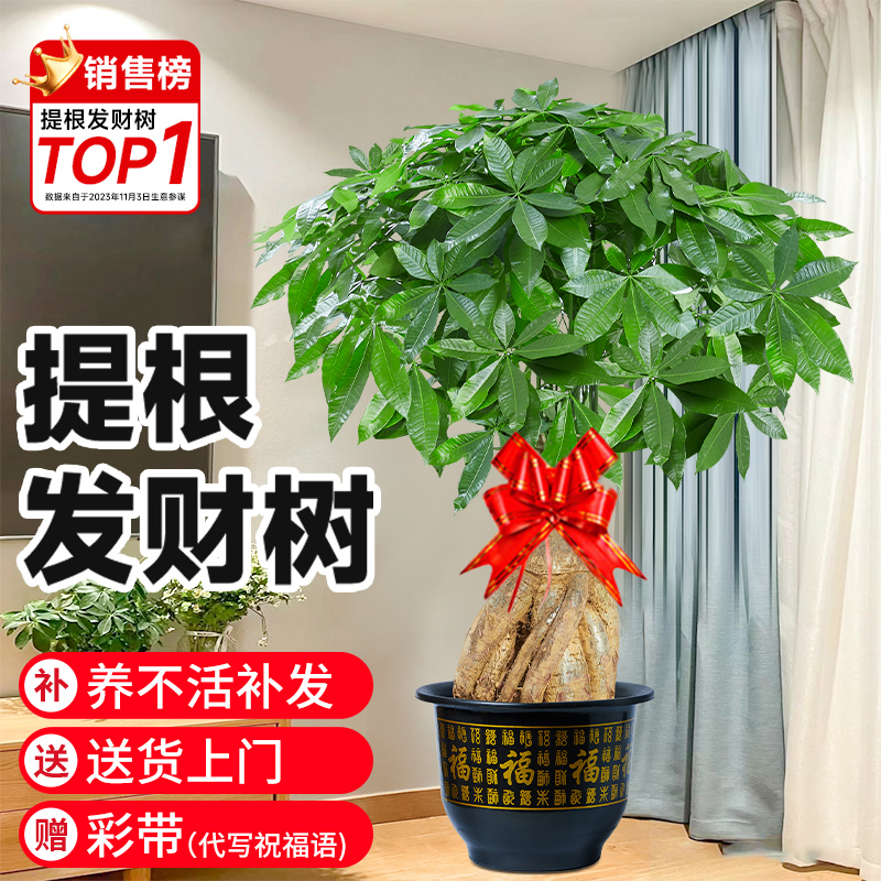 提根发财树客厅盆栽大棵招财树室内大型绿植物落地办公室开业送礼