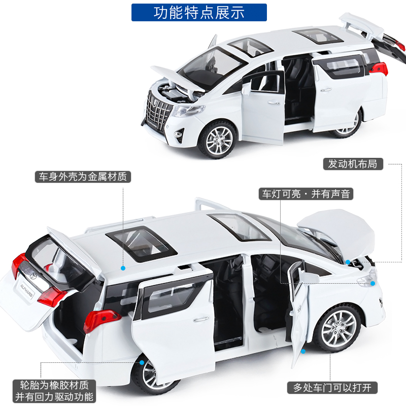 6开门埃尔法豪华MPV商务车男孩子仿真合金回力小汽车模型玩具礼物