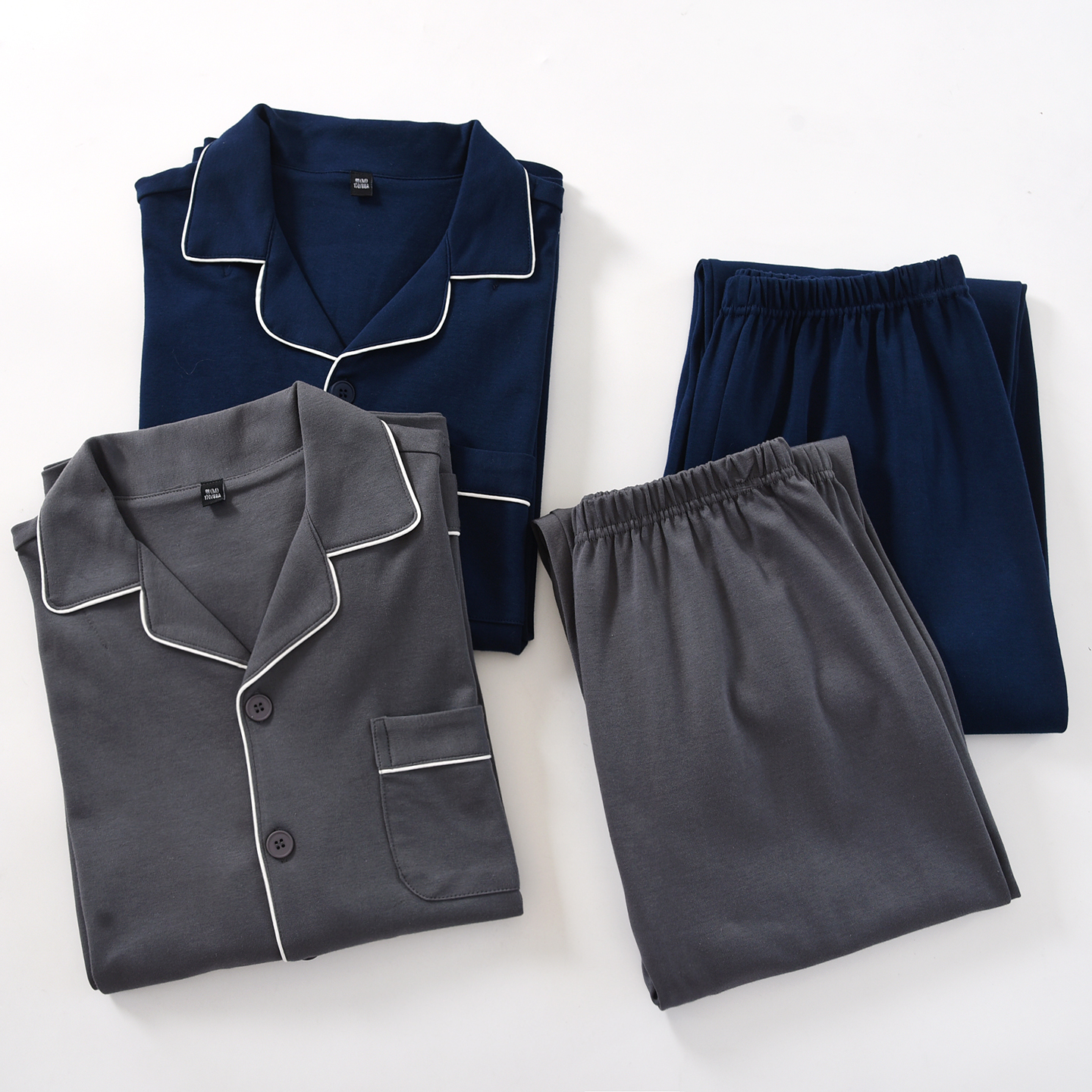 新款纯棉睡衣家居服男士春夏秋冬季全棉针织宽松长袖长裤开衫套装