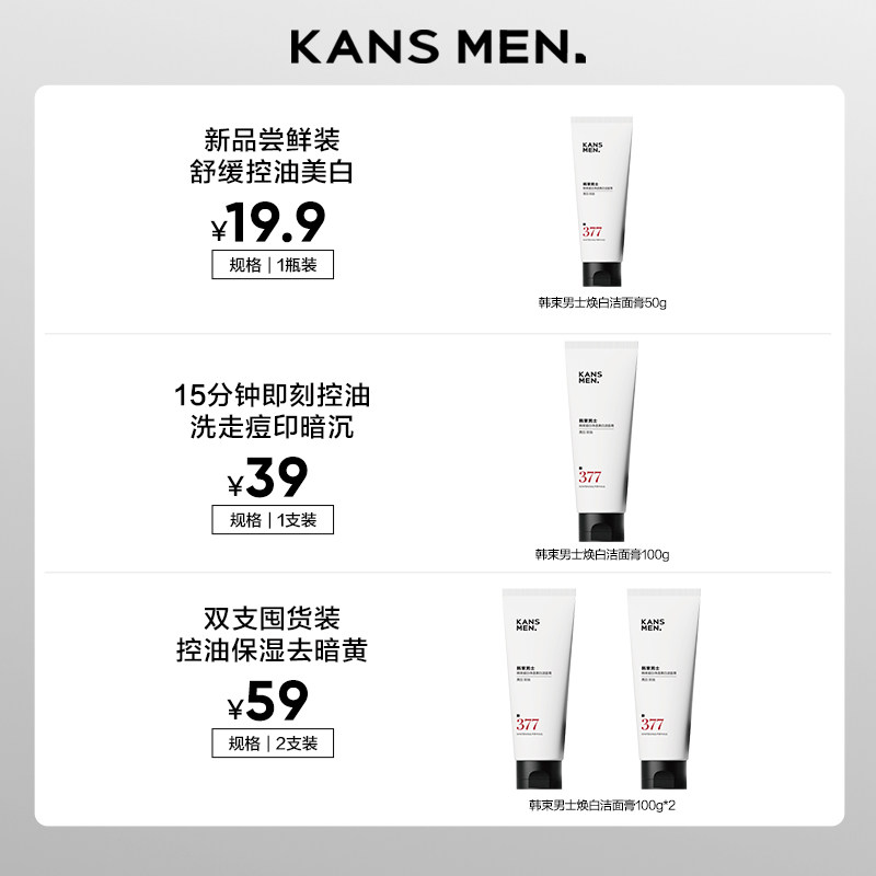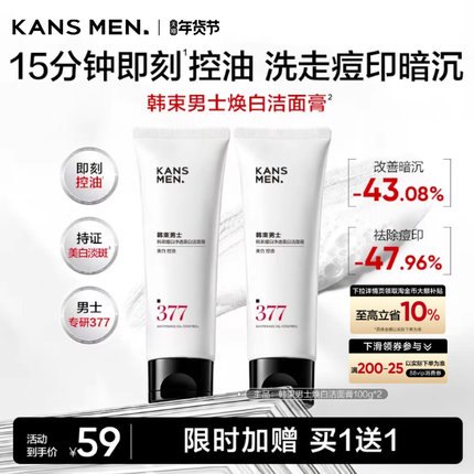 韩束男士美白淡斑专用377洗面奶女士洁面乳男生护肤品官方正品