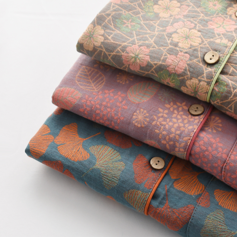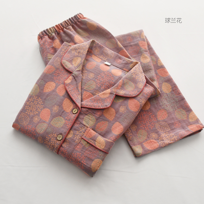 复古碎花提花睡衣女士春秋季纯棉纱布薄款宽松大码长袖家居服套装