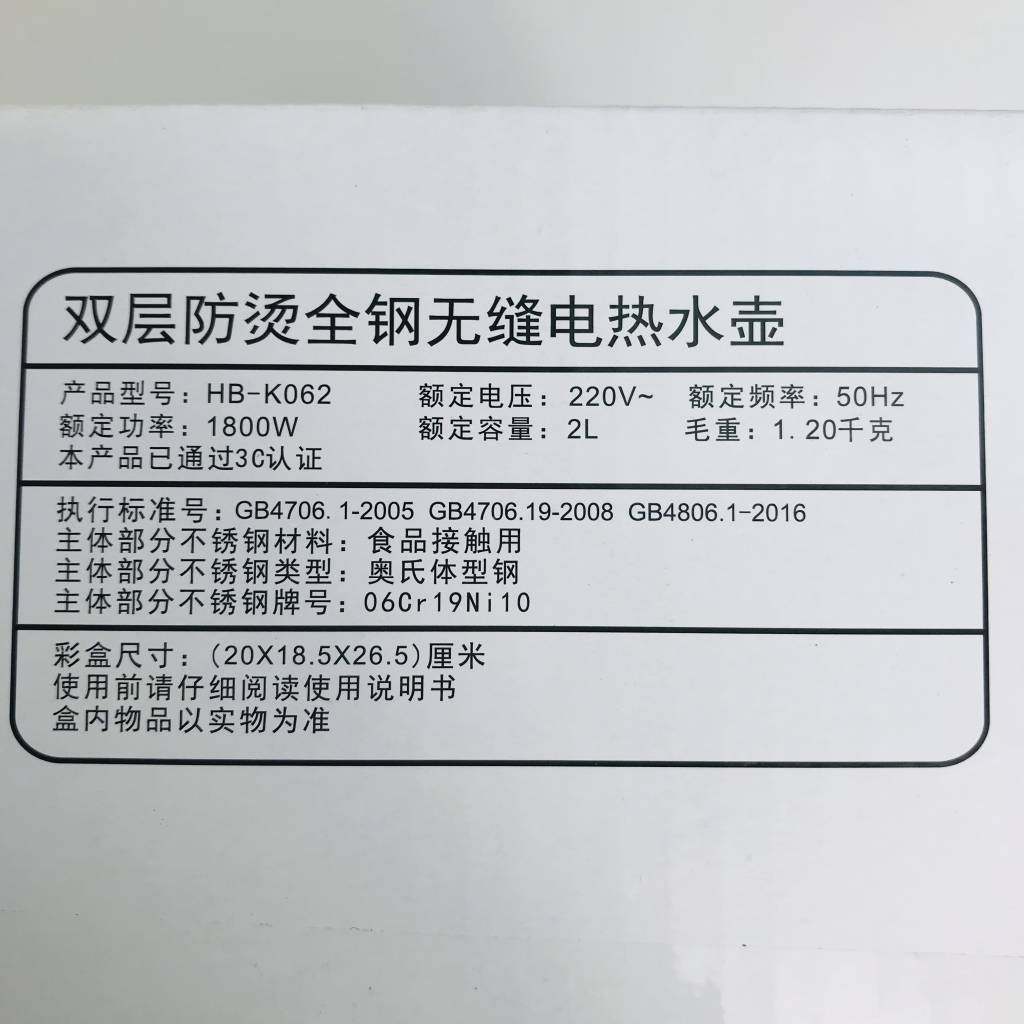 安博尔电水壶HB-K062家用2L双层防烫无缝食品级304不锈钢烧水壶