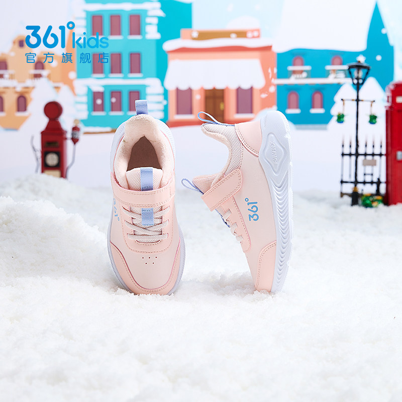 361°童鞋女童棉鞋2024冬季新品保暖革面男童加绒防滑小童运动鞋