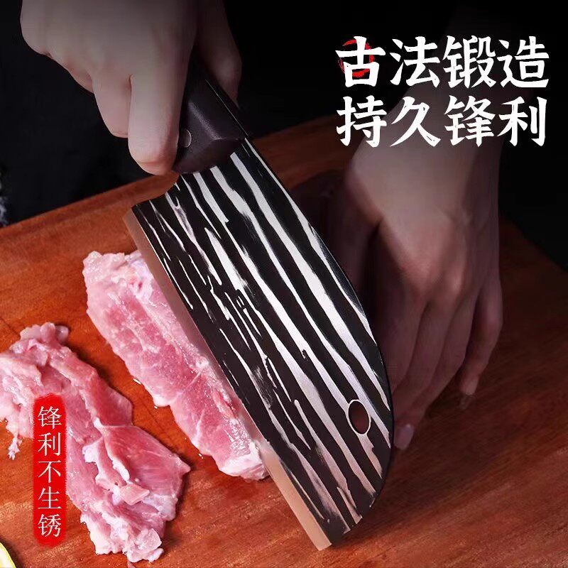 龙泉菜刀家用刀具厨房锻打斩切两用刀圆头锋利斩骨刀商用杀鱼刀具