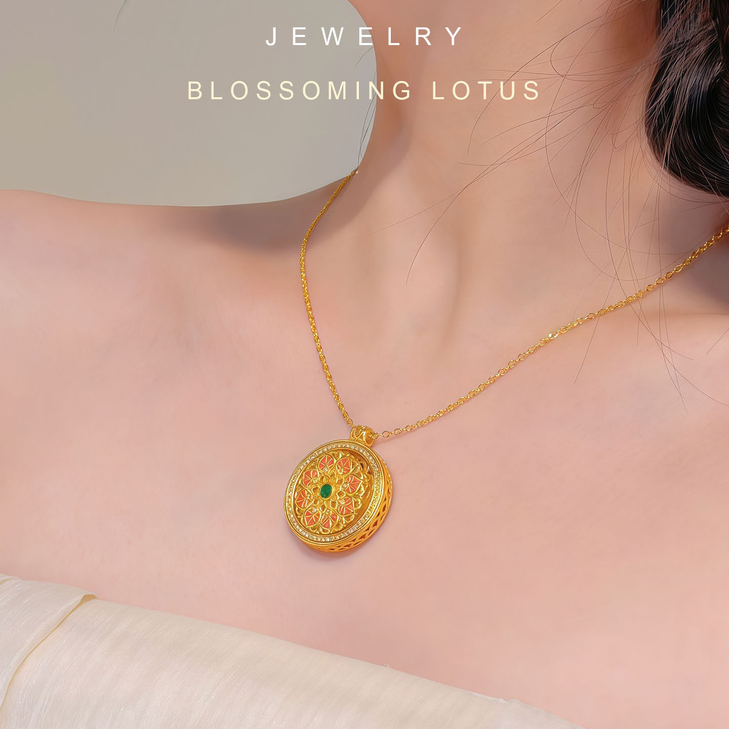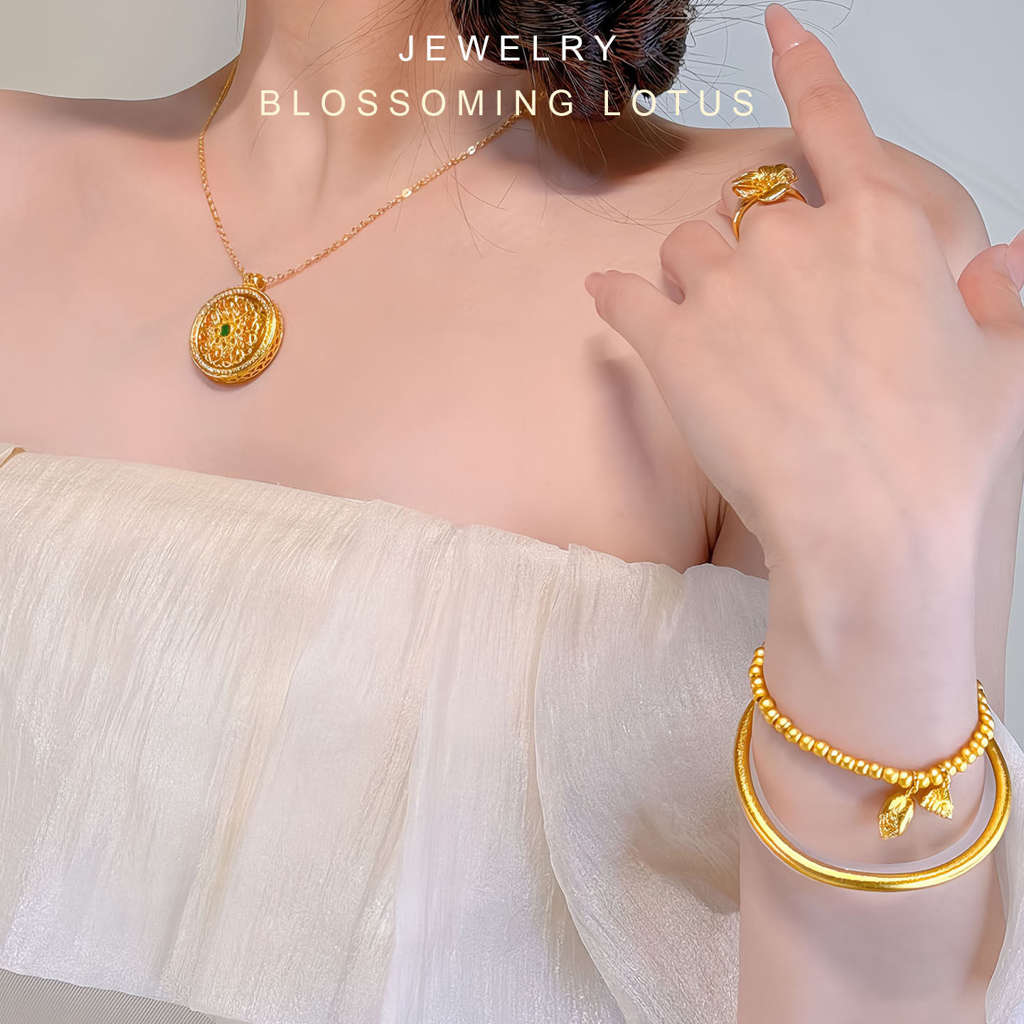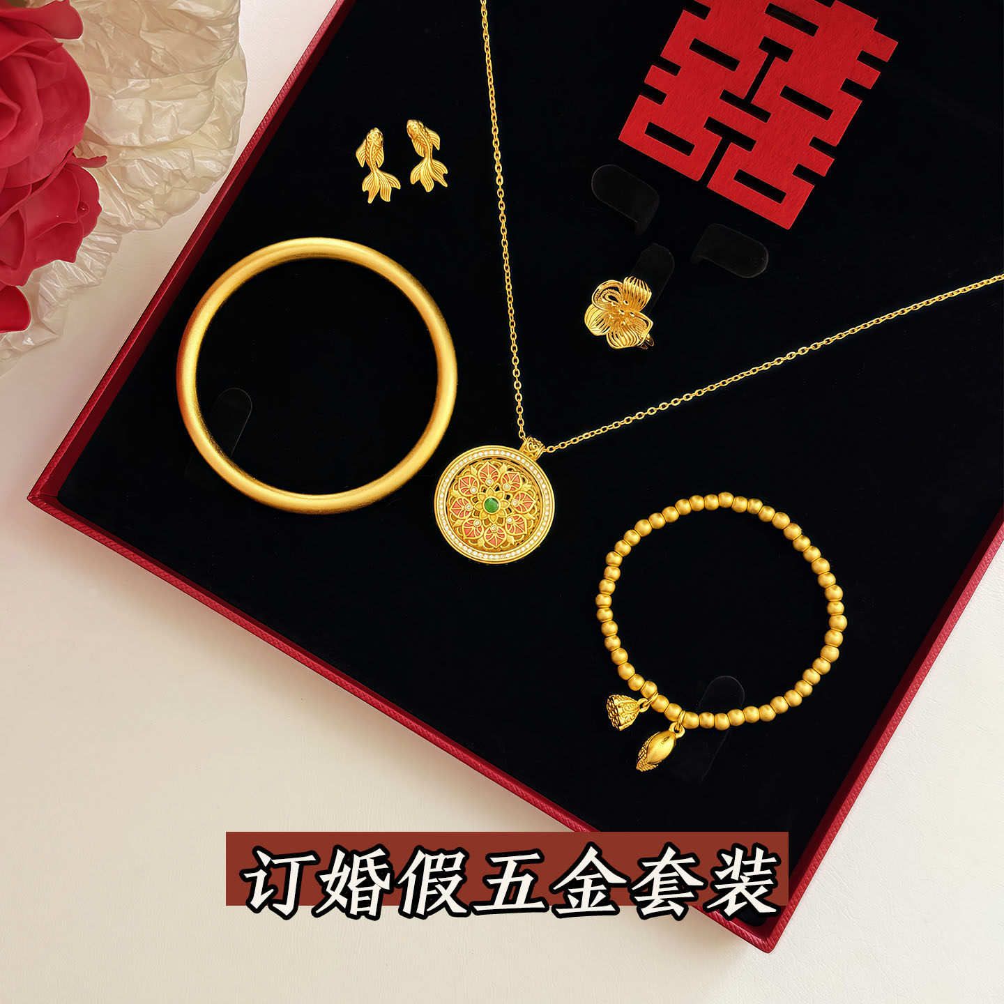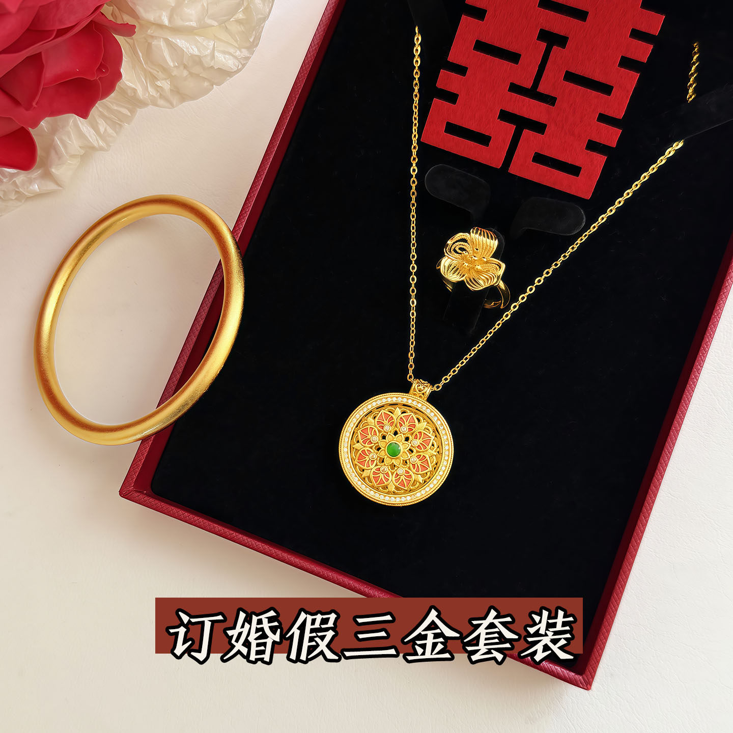 「莲花罗盘」仿真黄金项链新中式订婚结婚假三金五金婚嫁首饰套装
