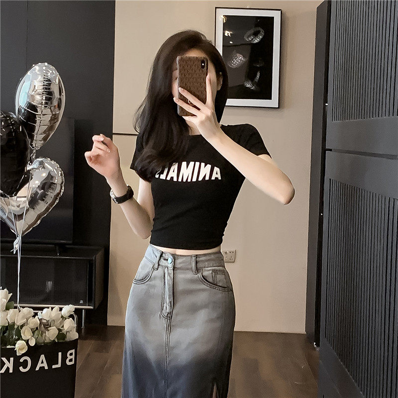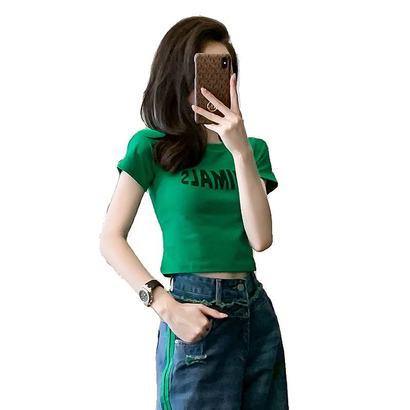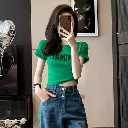 短款紧身短袖t恤女夏季新款高腰修身显瘦露脐辣妹正肩半袖衫上衣