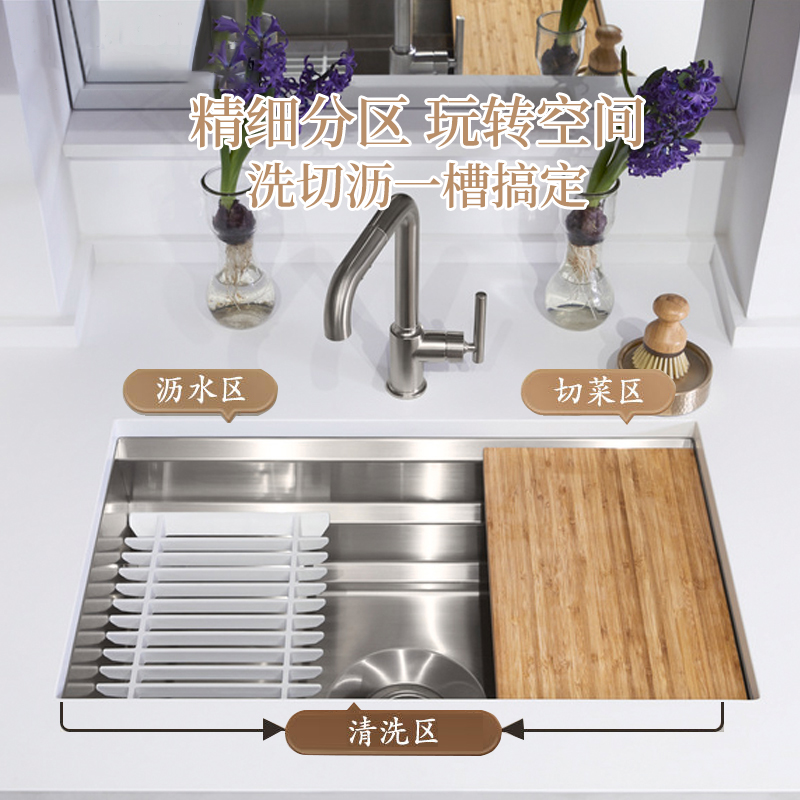 科勒304不锈钢加厚水槽多功能手工大单槽台下洗菜盆K-23651T-C-NA