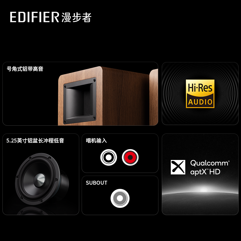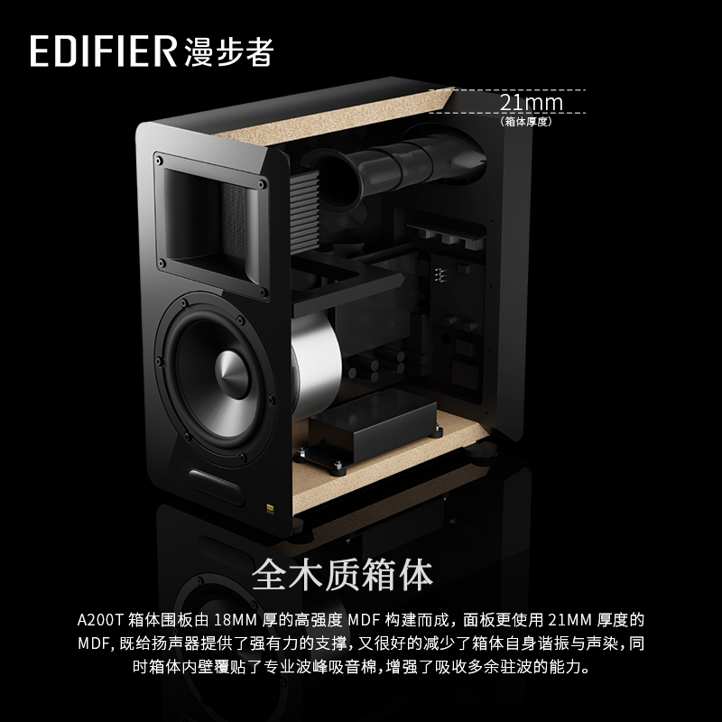 EDIFIER漫步者A200T典藏式书架音箱有源HIFI蓝牙电视客厅桌面音响
