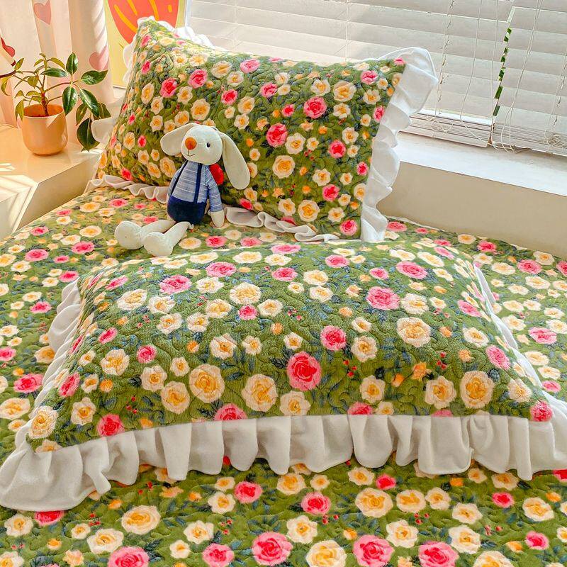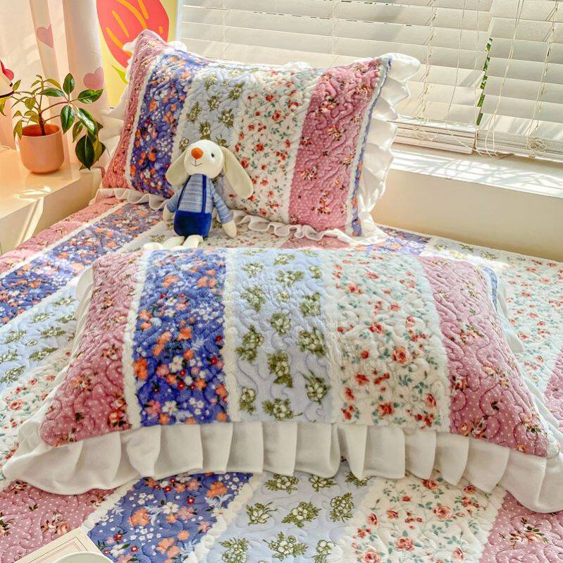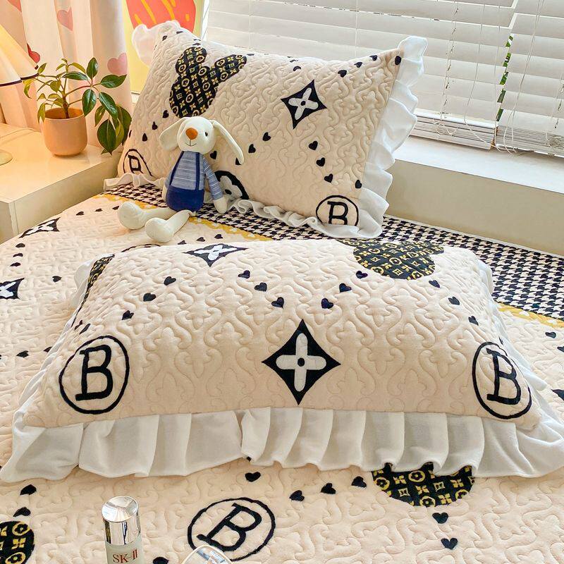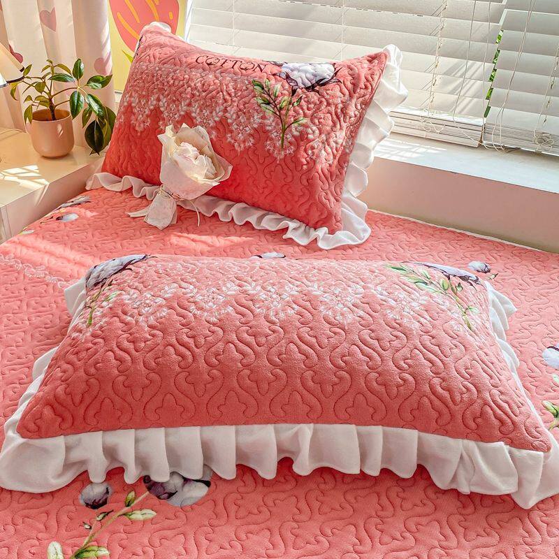 冬季牛奶绒夹棉枕套一对装珊瑚绒花边枕头套加厚保暖枕芯套48*74