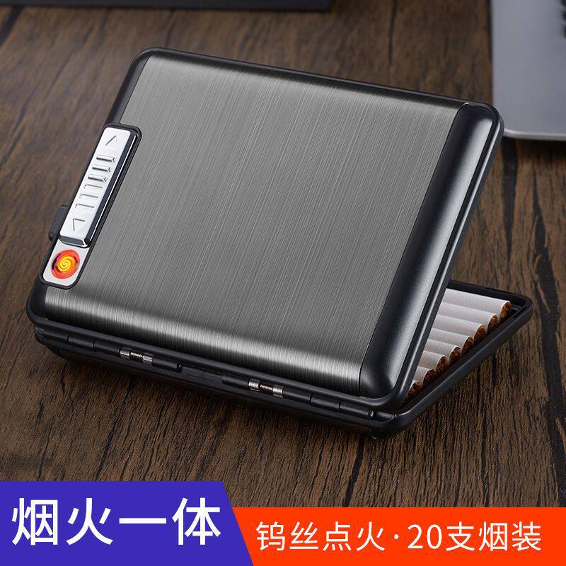 充电打火机烟盒一体20支装超薄便携男士防压防潮烟合便携防风套盒