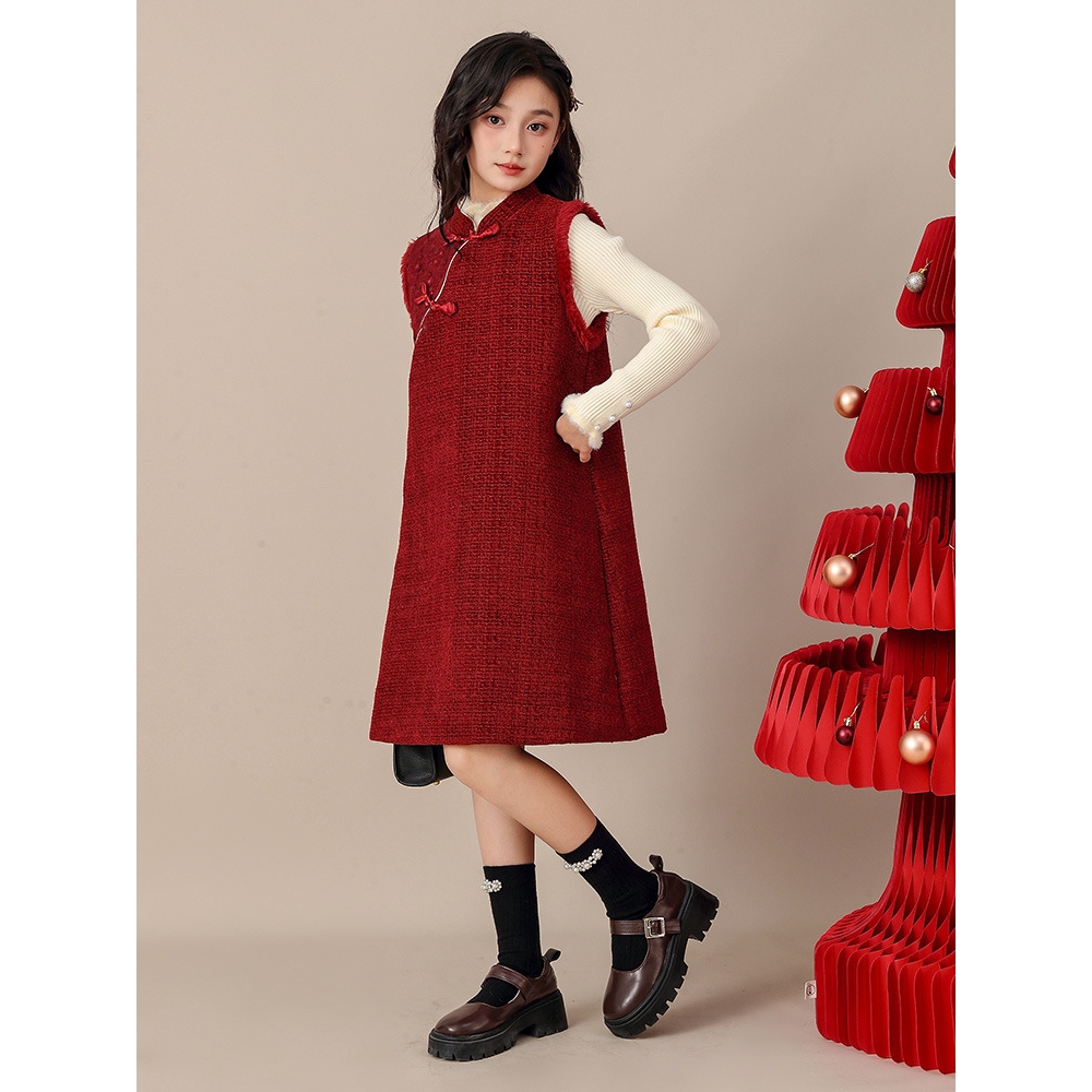 加绒背心女童秋冬款旗袍装高级感国风改良版裙子两件套连衣裙套装