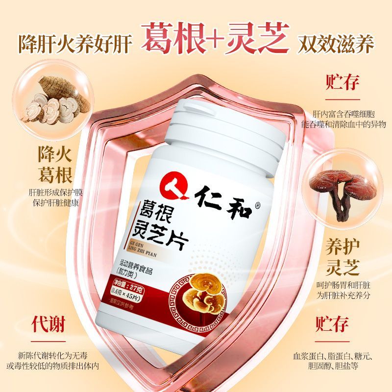 葛根灵芝片45粒养肝护肝熬夜饮酒油腻草本降肝火滋补经典方