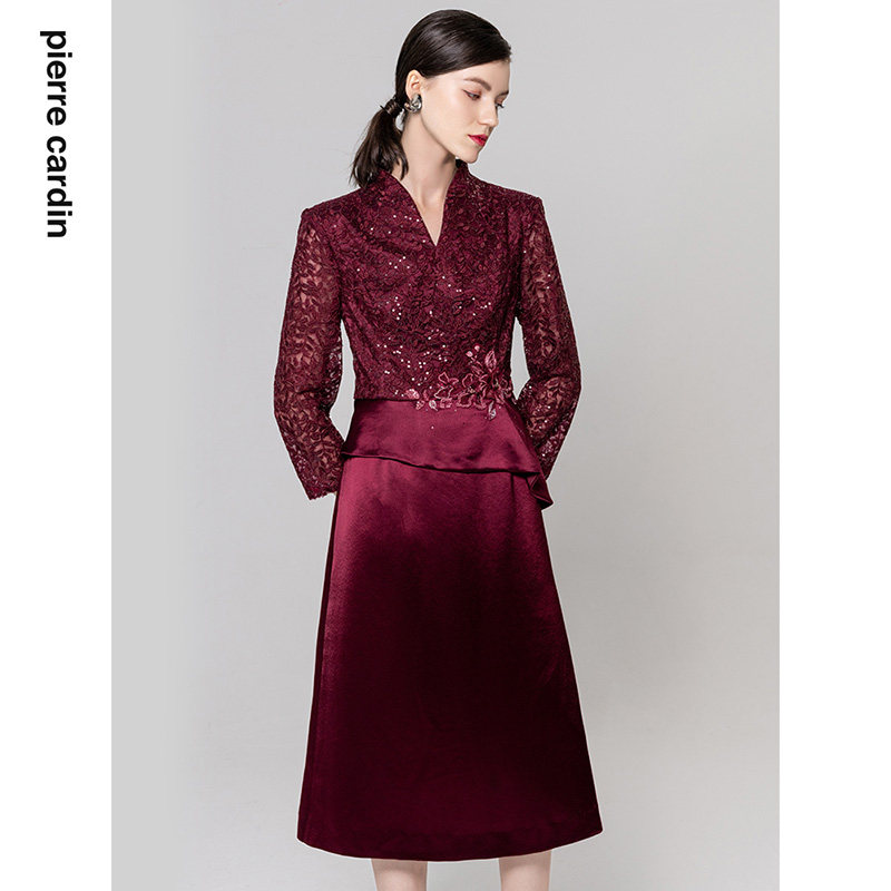 商场同款皮尔卡丹女装年秋季新款蕾丝小H摆礼服连衣裙