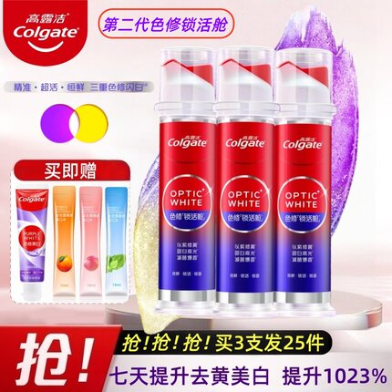 新品高露洁直立式紫光色修锁活舱美白牙膏去黄去渍清新亮白牙齿