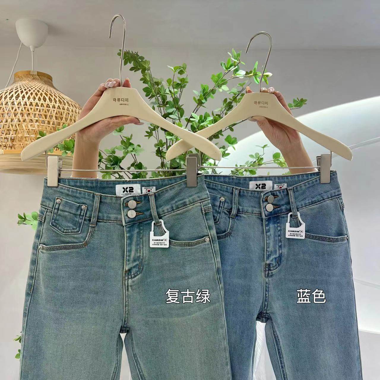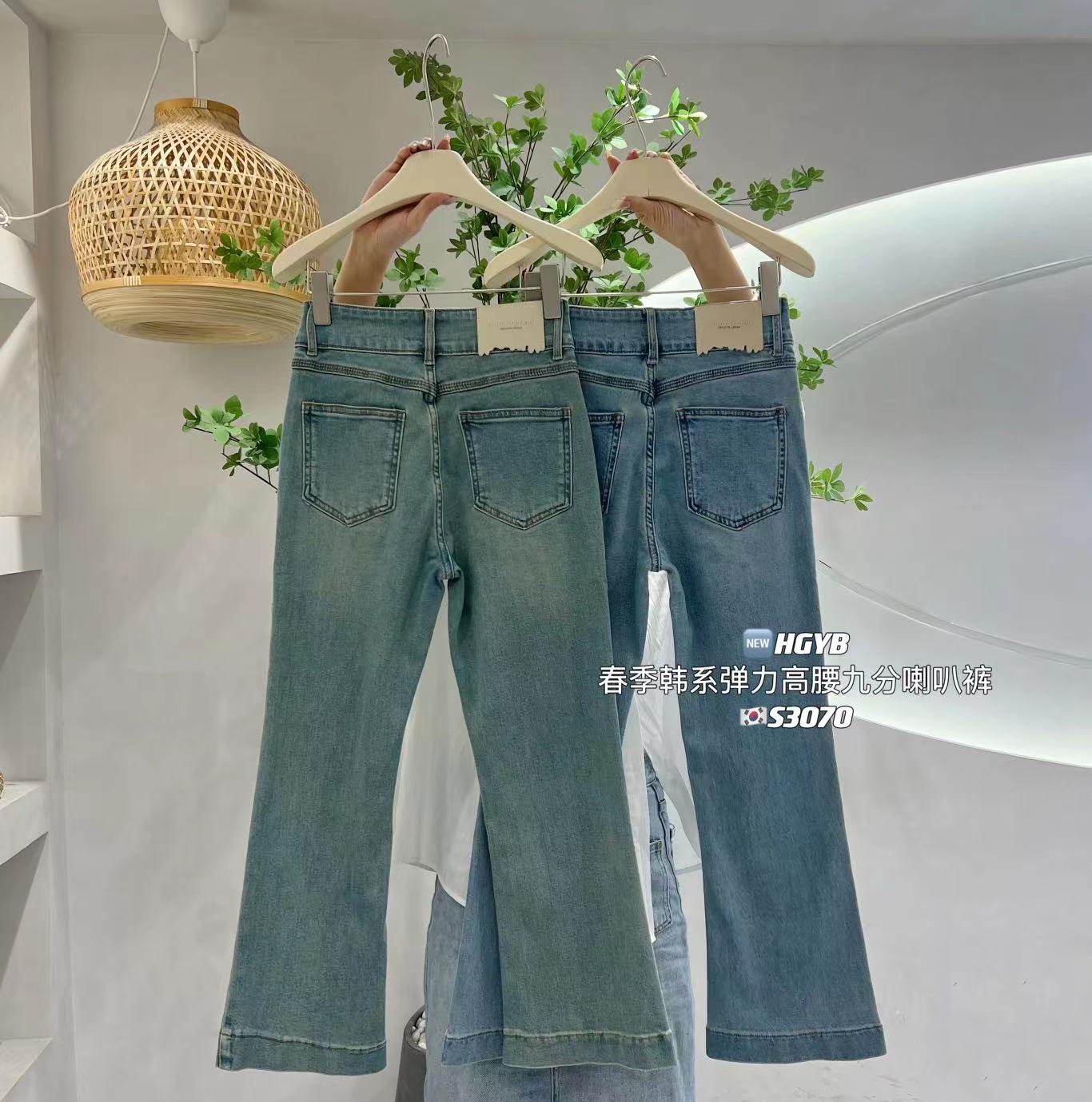 x2九分喇叭裤女2024春季新款韩版修身显瘦高腰弹力复古微喇牛仔裤