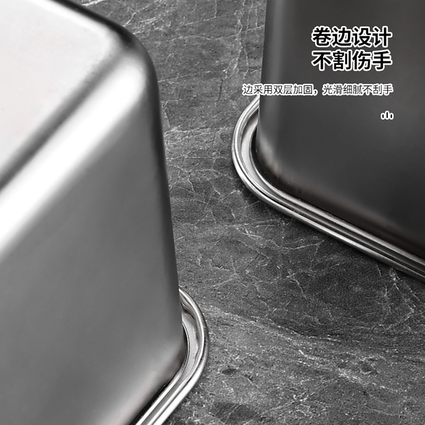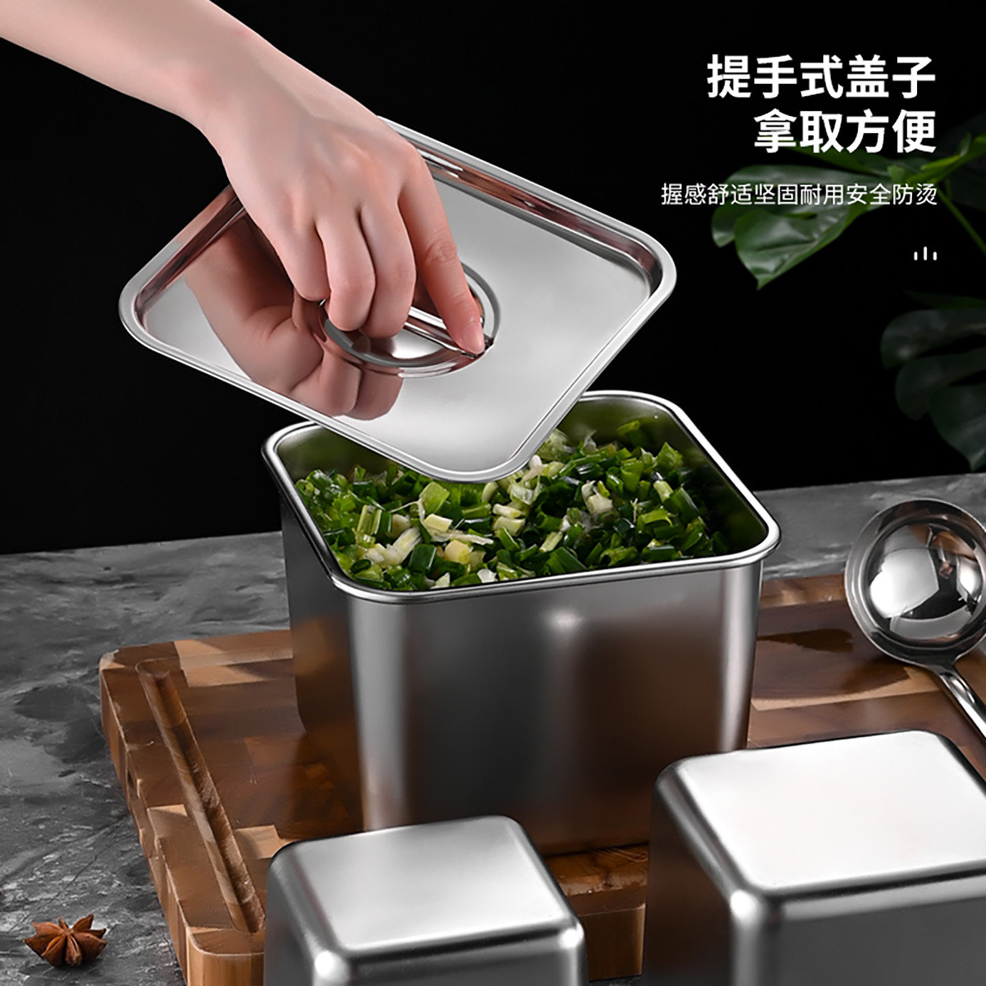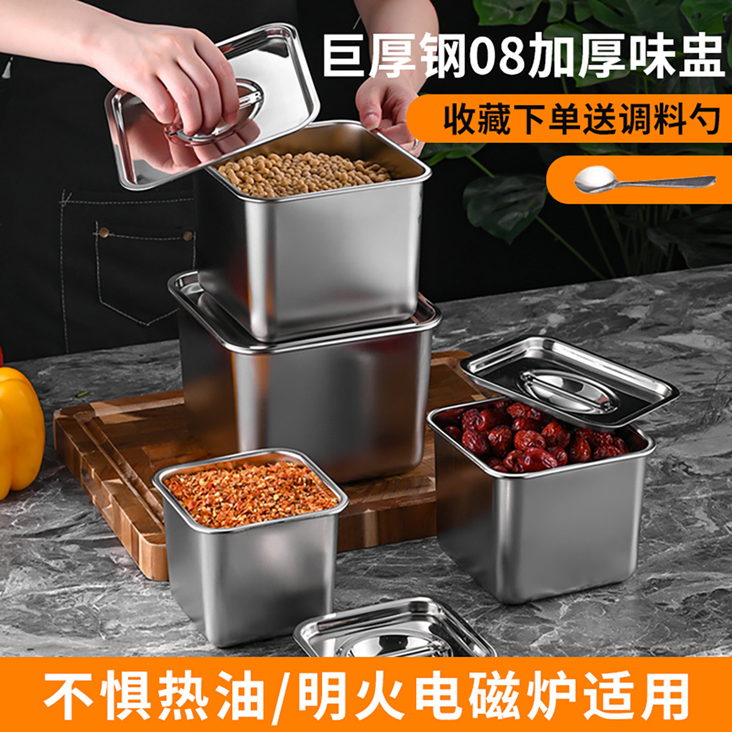 不锈钢味盅商用调料罐带盖厨房装猪油盆正方形桶收纳佐料盒调味缸