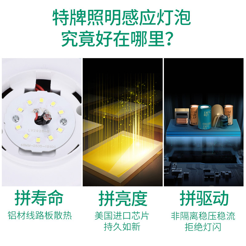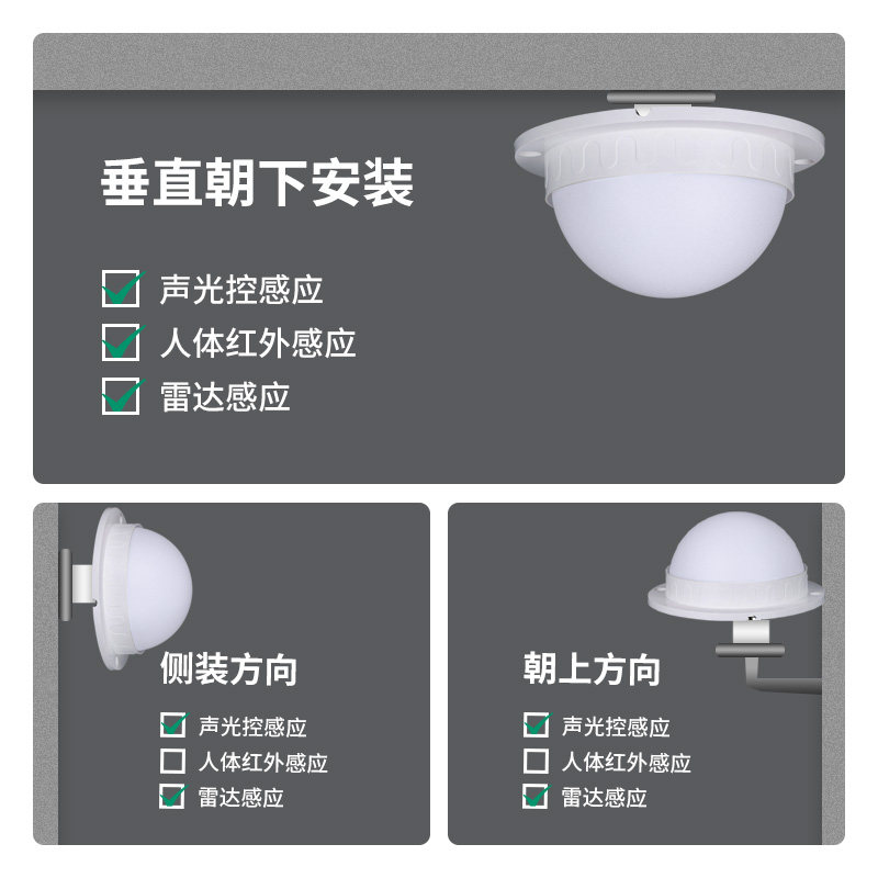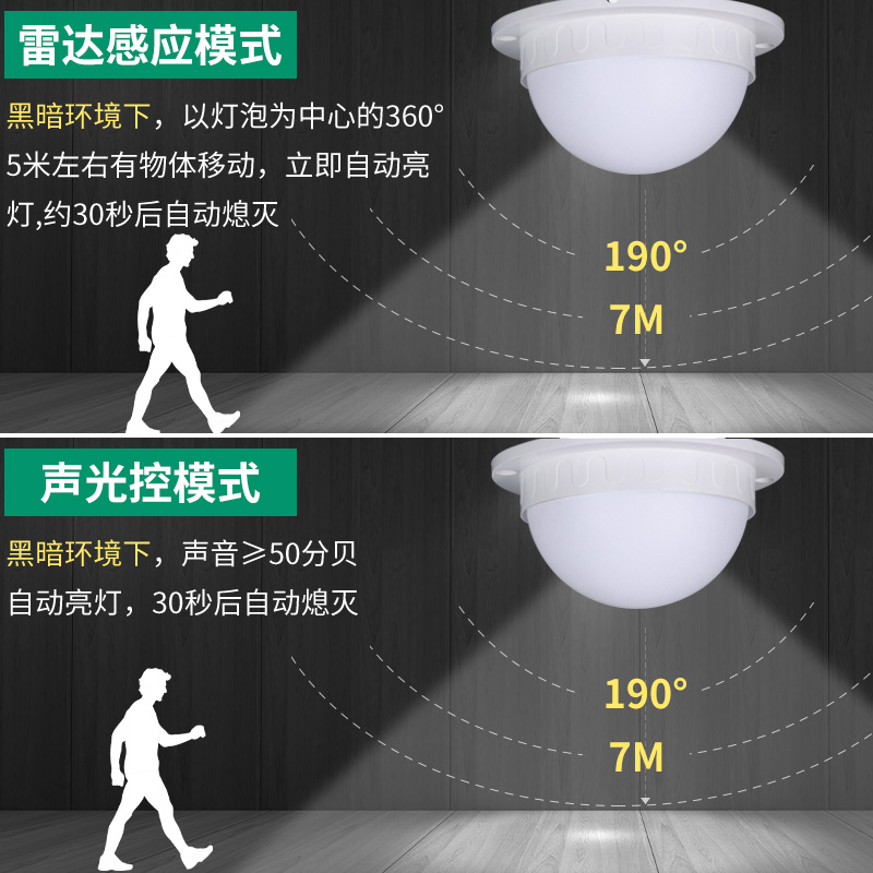 LED声控灯声光控雷达人体感应一体过道走廊阳台楼道吸顶灯泡节能