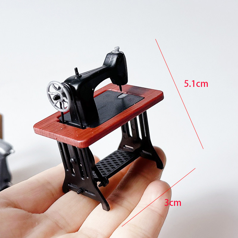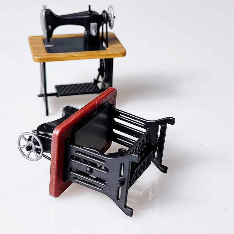 迷你缝纫机模型娃娃屋家具摆件儿童过家家小玩具复古怀旧微缩场景