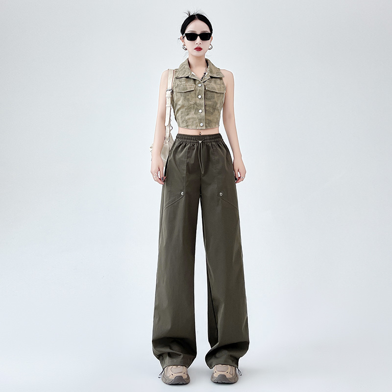 高腰显瘦百搭两穿工装裤