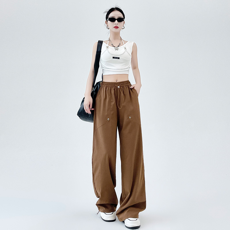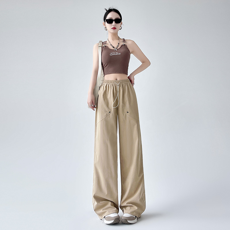 卡其两穿工装裤女2025春夏款高腰美式阔腿裤直筒运动裤休闲哈伦裤
