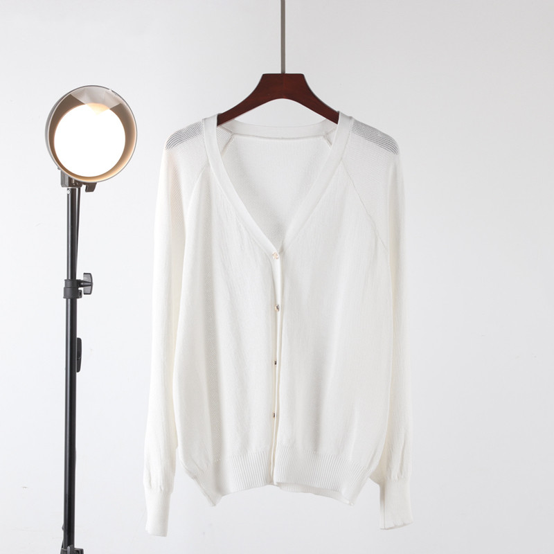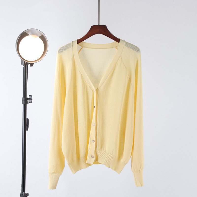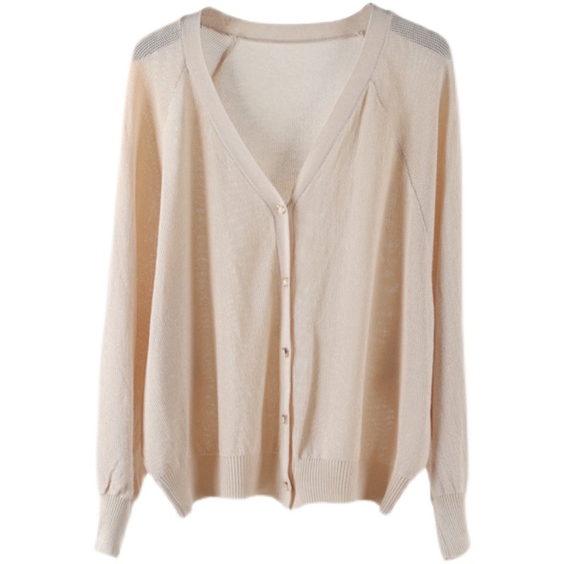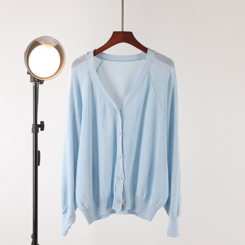 2025夏季新款韩版针织开衫女外套V领长袖冰丝薄款时尚纯色空调衫